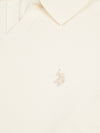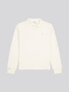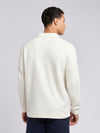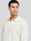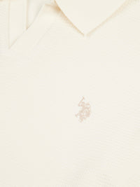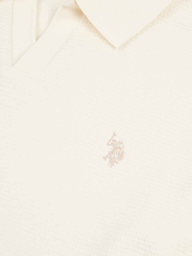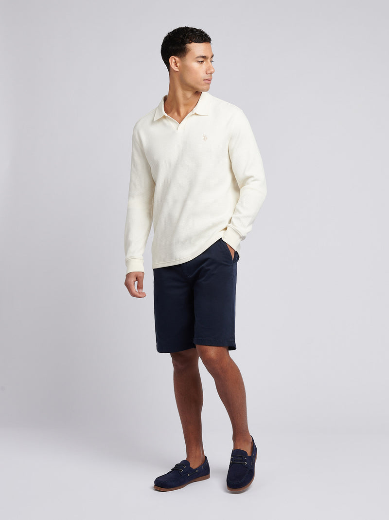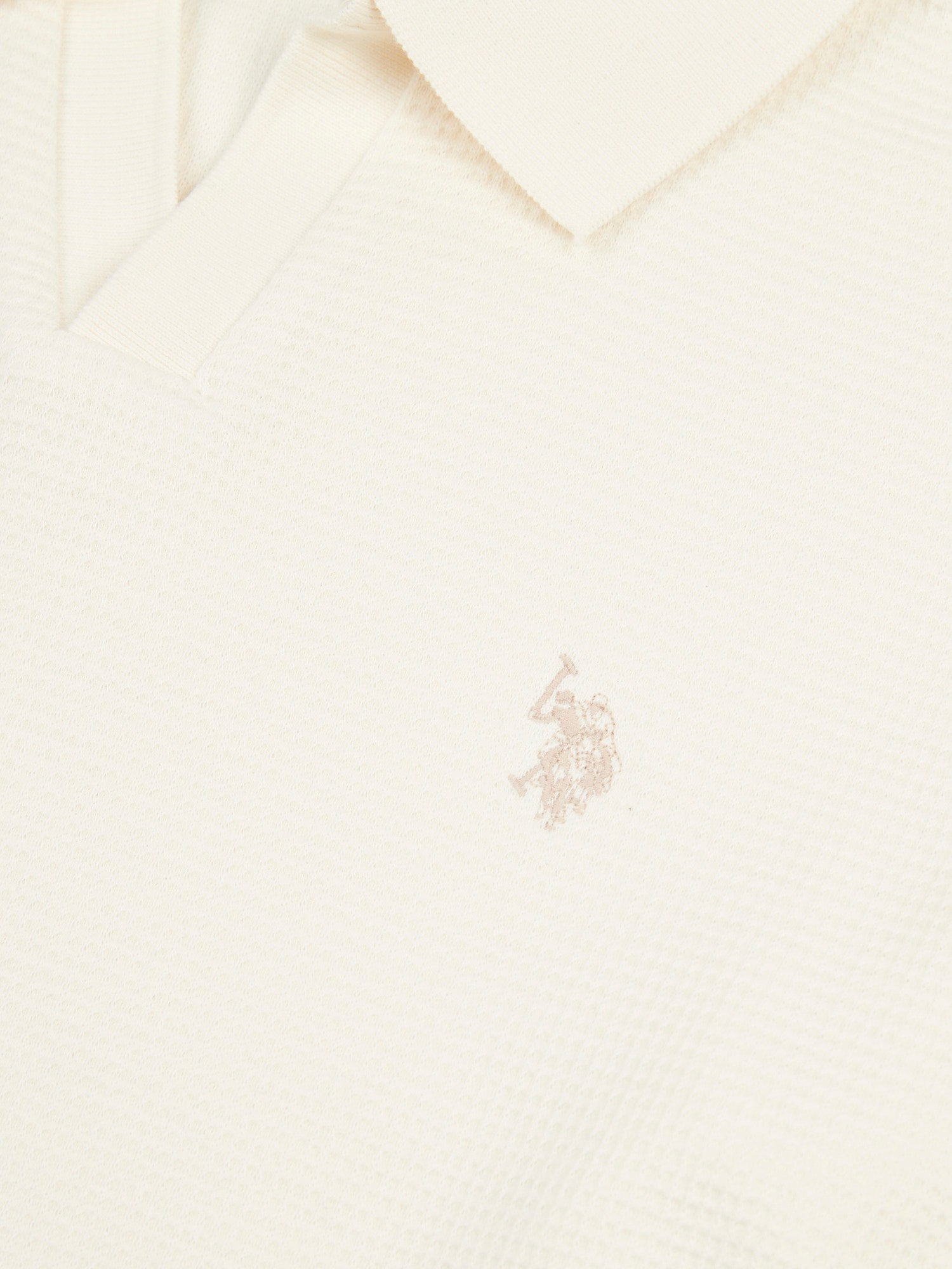 Mens Waffle Texture Open Collar Long Sleeve Polo Shirt in Whisper White