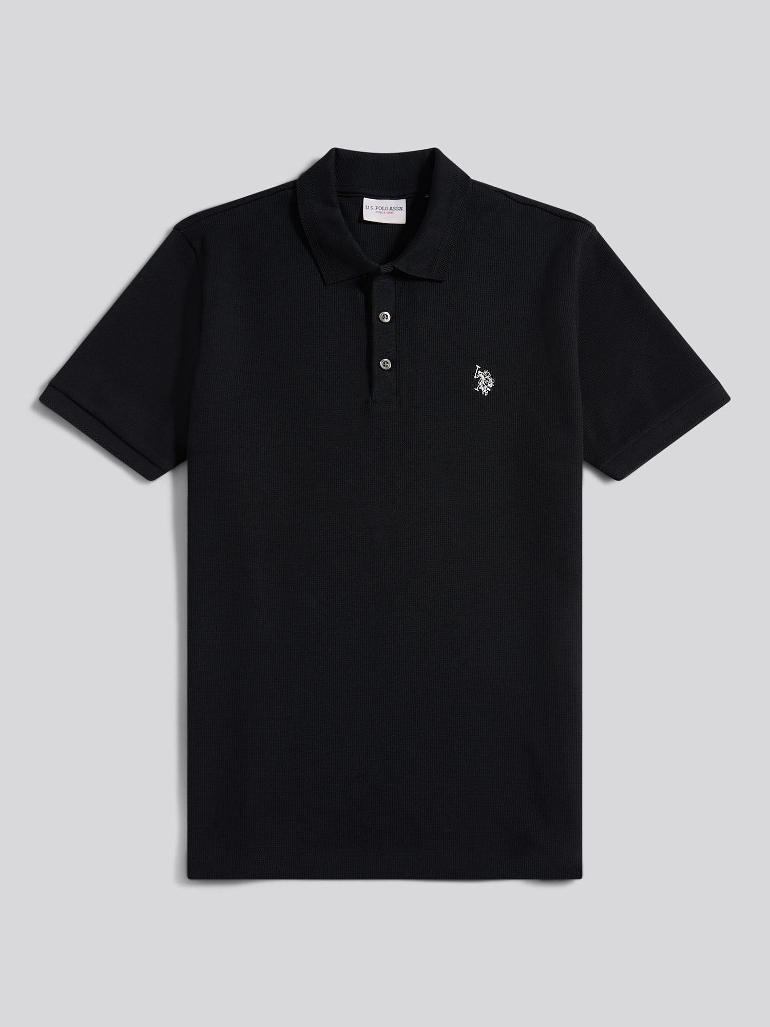Effortlessly merging heritage style with elevated texture, the U.S. Polo Assn. Mens Waffle Texture Polo Shirt stands out with its tactile jersey knit and refined finish. Detailed with smart honeycomb tipping and a classic placket, it’s perfect for pairing with chinos or layered under lightweight jackets for a confident off-duty look.