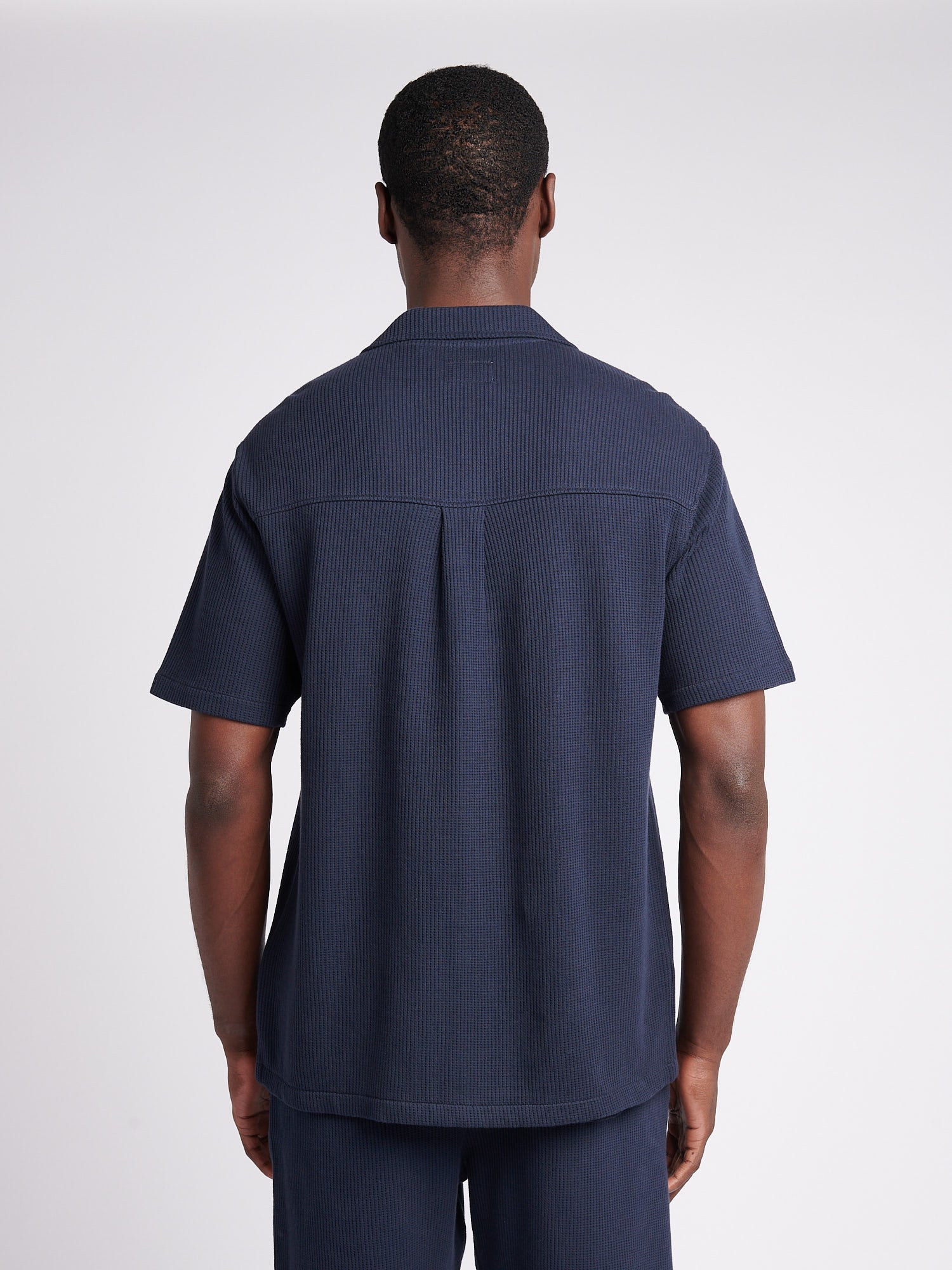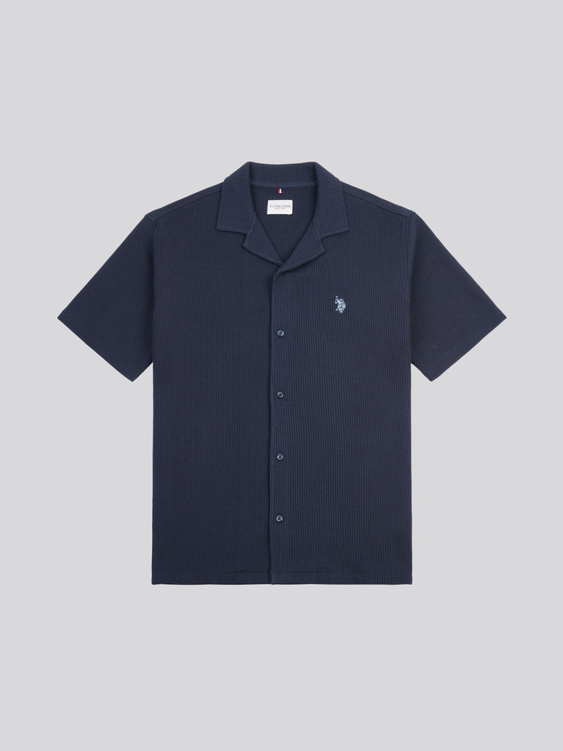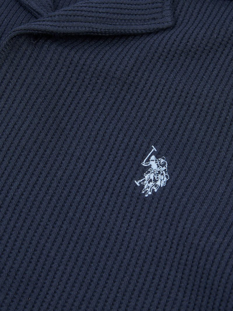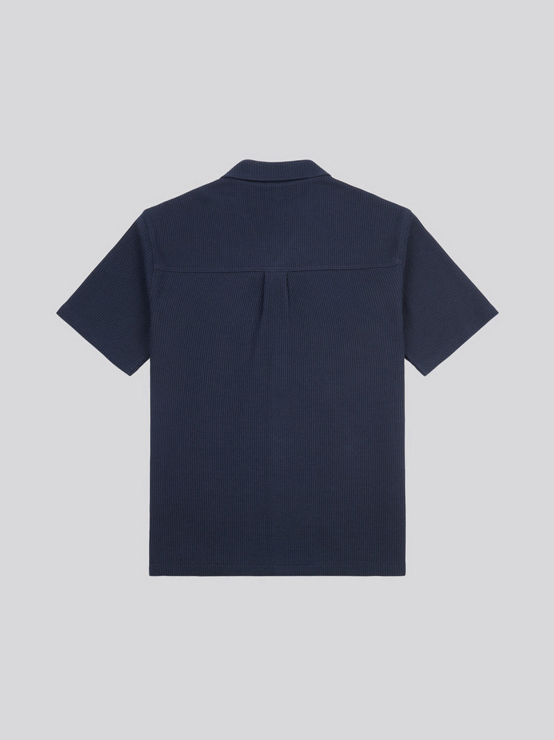 Mens Waffle Texture Revere Shirt in Dark Sapphire Navy