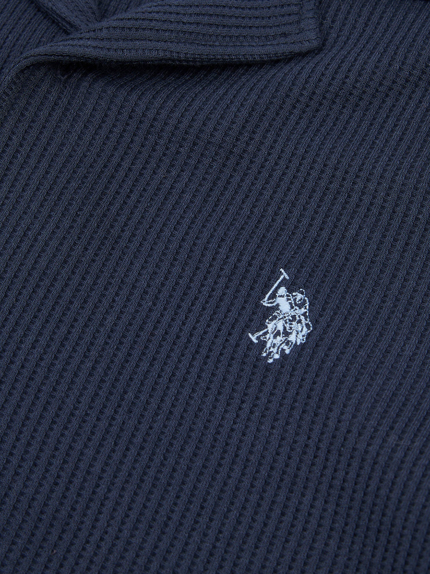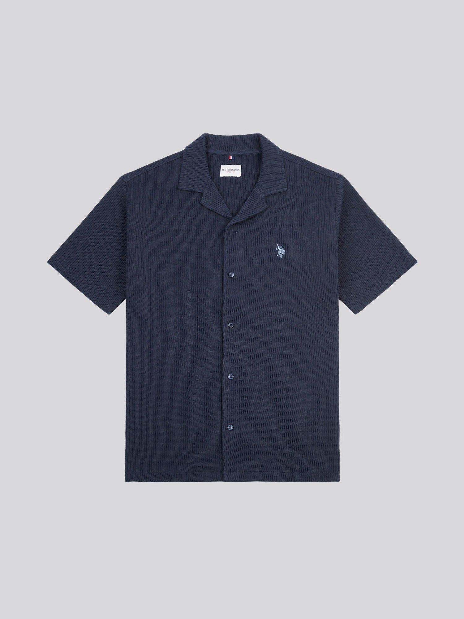 Elevate your warm-weather wardrobe with the mens Waffle Texture Revere Shirt by U.S. Polo Assn. Crafted from a soft waffle-textured fabric, this shirt adds a unique depth and sophistication to casual styling, perfect for relaxed yet refined occasions. Pair it with chinos for a polished, effortless look or with shorts for laid-back summer style.