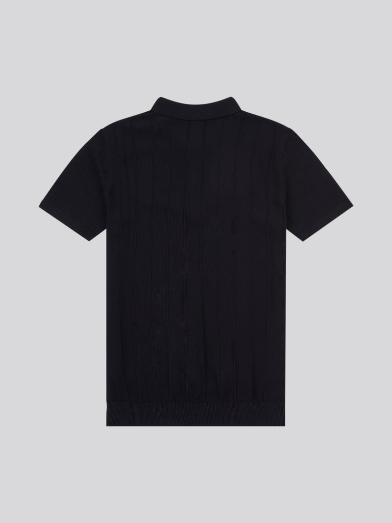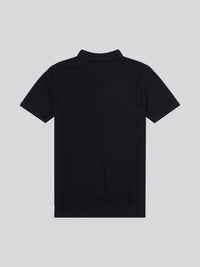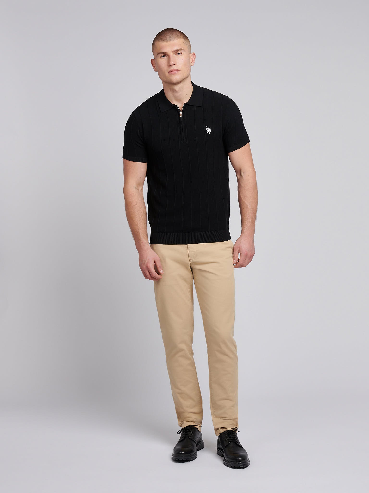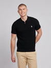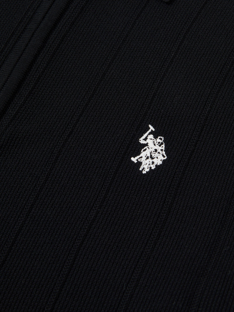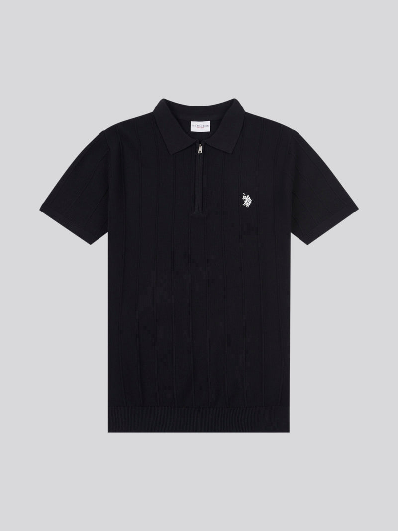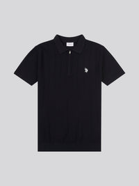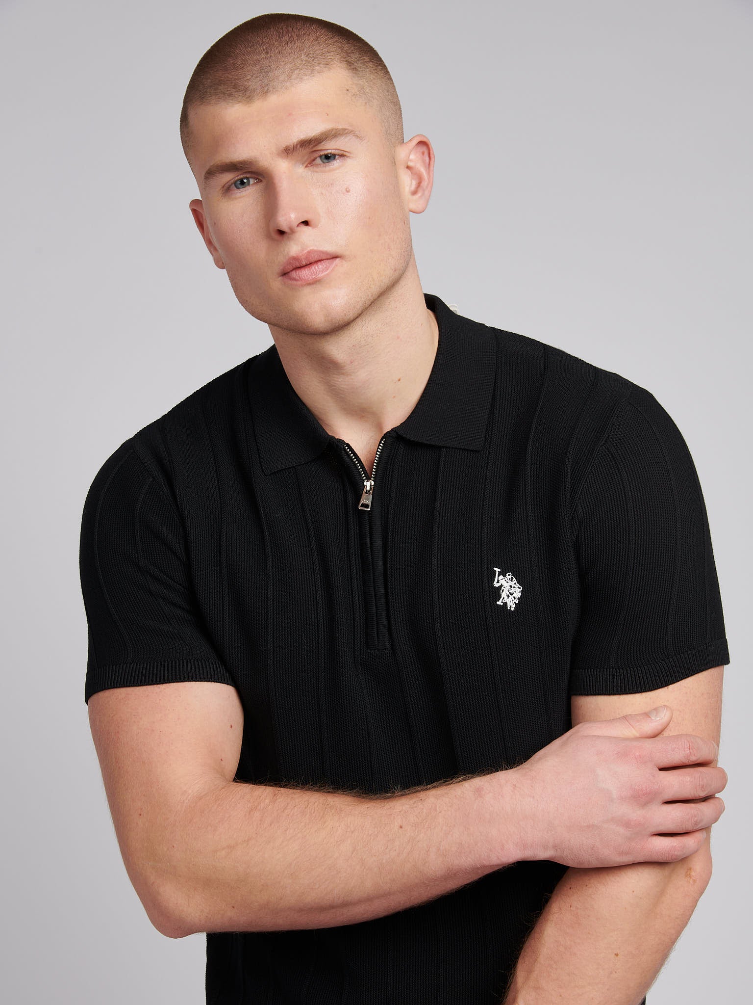 Mens Zip Knit Polo Shirt in Black Bright White DHM