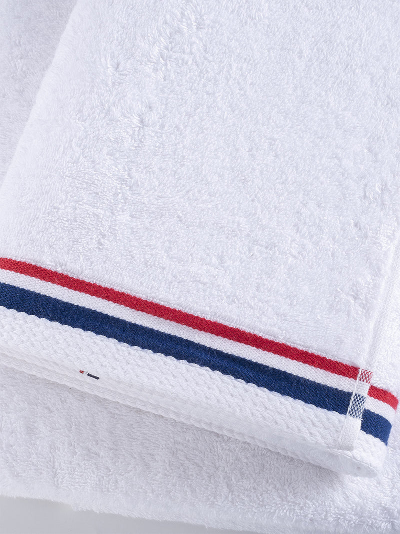 Elevate your bathroom experience with the U.S. Polo Assn. Pure Cotton Brand Stripe Towel. Designed with the perfect balance of practicality and elegance, this towel is crafted from 100% cotton for superior absorbency and a soft touch. Featuring a bold branded stripe trim and subtle border, it brings a polished, contemporary aesthetic to your space while reflecting the timeless heritage of the brand.