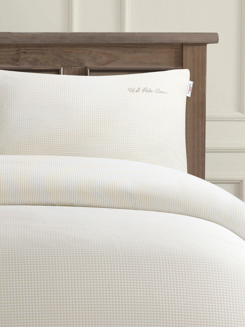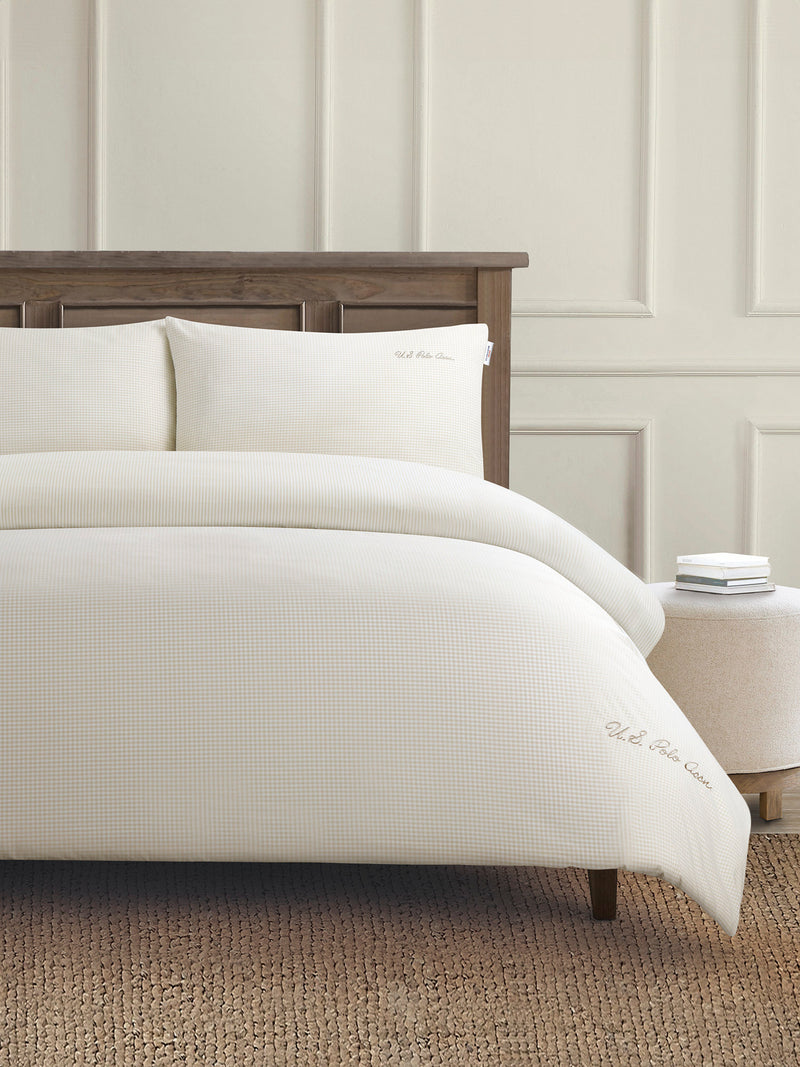 The U.S. Polo Assn. Pure Cotton Check Duvet Set brings timeless elegance to your bedroom. Crafted from 100% cotton with a 200-thread count, it offers a soft, breathable feel for year-round comfort. The classic check design, paired with the embroidered script logo and branded tabs on the seams, adds a refined touch to your décor. Style with crisp white sheets or neutral tones for a polished look.