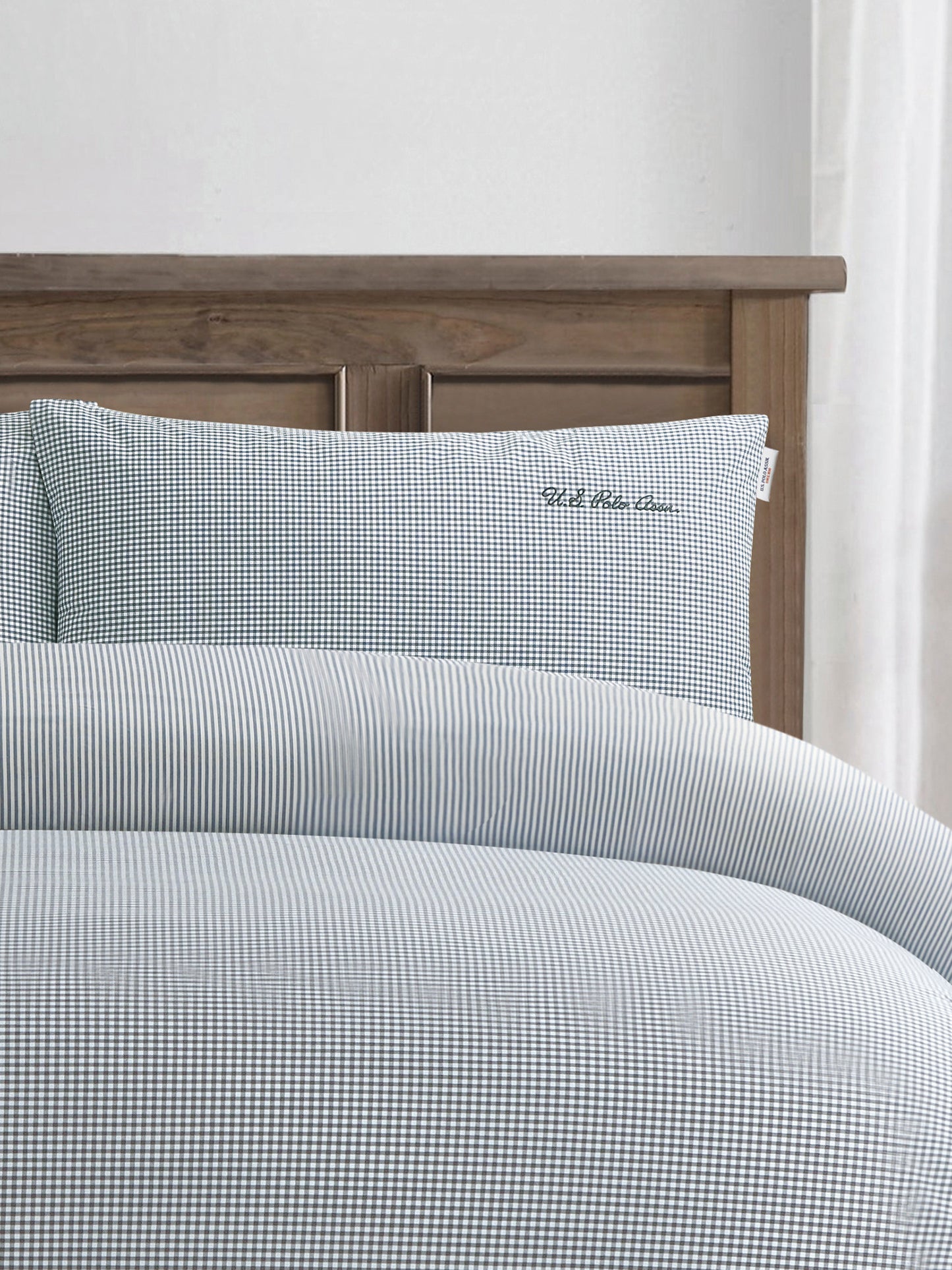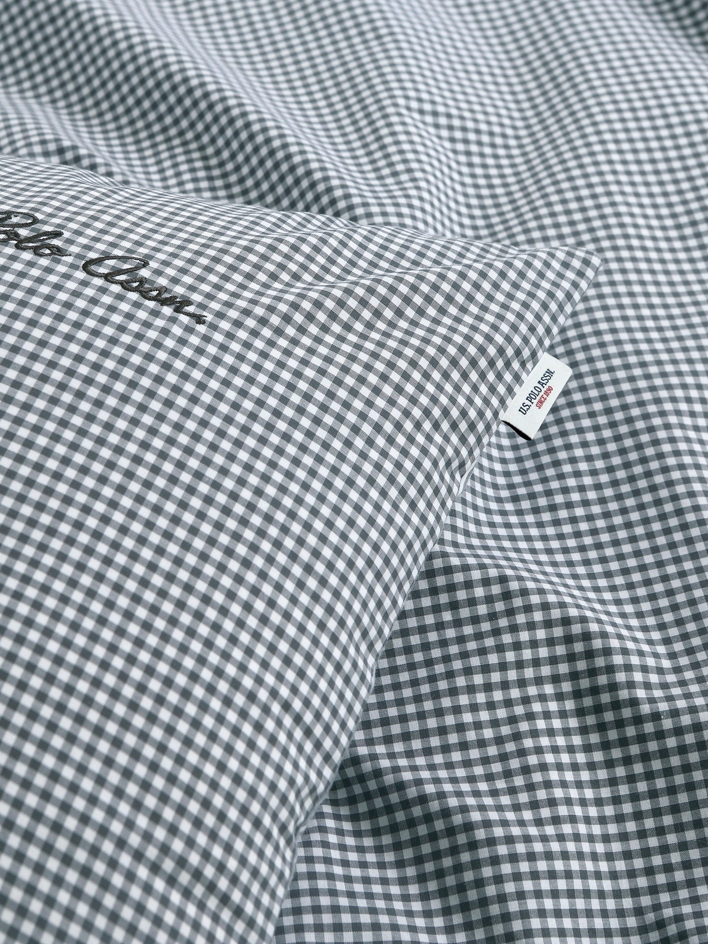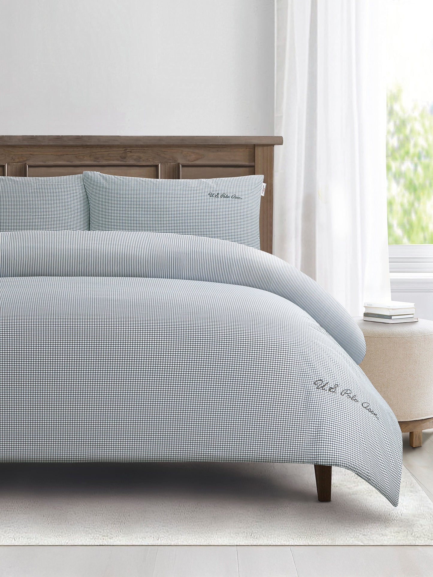 The U.S. Polo Assn. Pure Cotton Check Duvet Set brings timeless elegance to your bedroom. Crafted from 100% cotton with a 200-thread count, it offers a soft, breathable feel for year-round comfort. The classic check design, paired with the embroidered script logo and branded tabs on the seams, adds a refined touch to your décor. Style with crisp white sheets or neutral tones for a polished look.