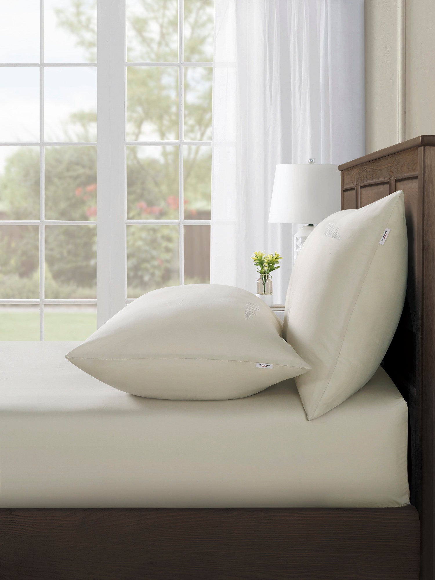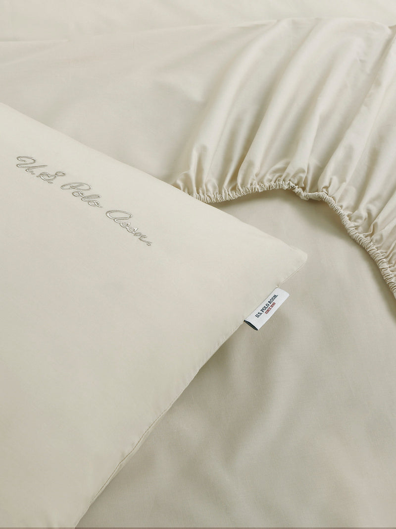 Elevate your bedroom with the U.S. Polo Assn. Pure Cotton Sheet & Pillowcase Set. Crafted from 100% cotton percale with a 200-thread count, these sheets offer breathable comfort and a soft, inviting texture. The tonal script embroidery on the pillowcase adds a refined touch, while the branded tab on the pillowcase seams subtly reflects the brand's heritage. Pair perfectly with crisp white bedding for a polished, elegant look. Perfect for a restful night’s sleep.