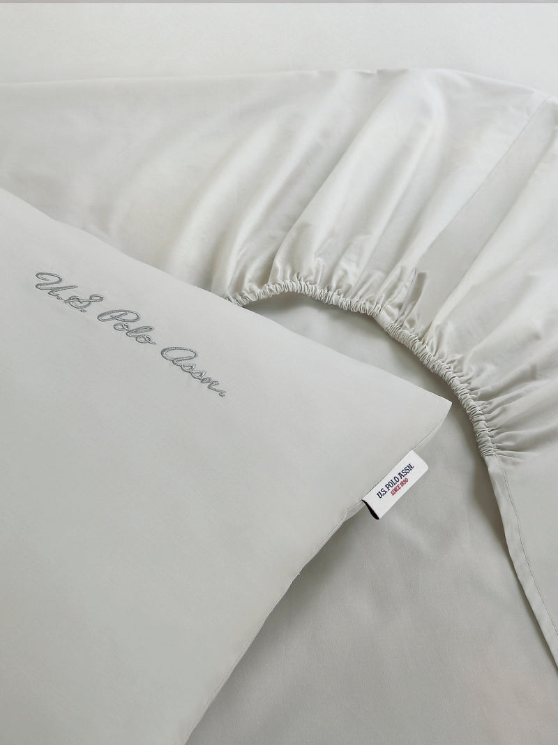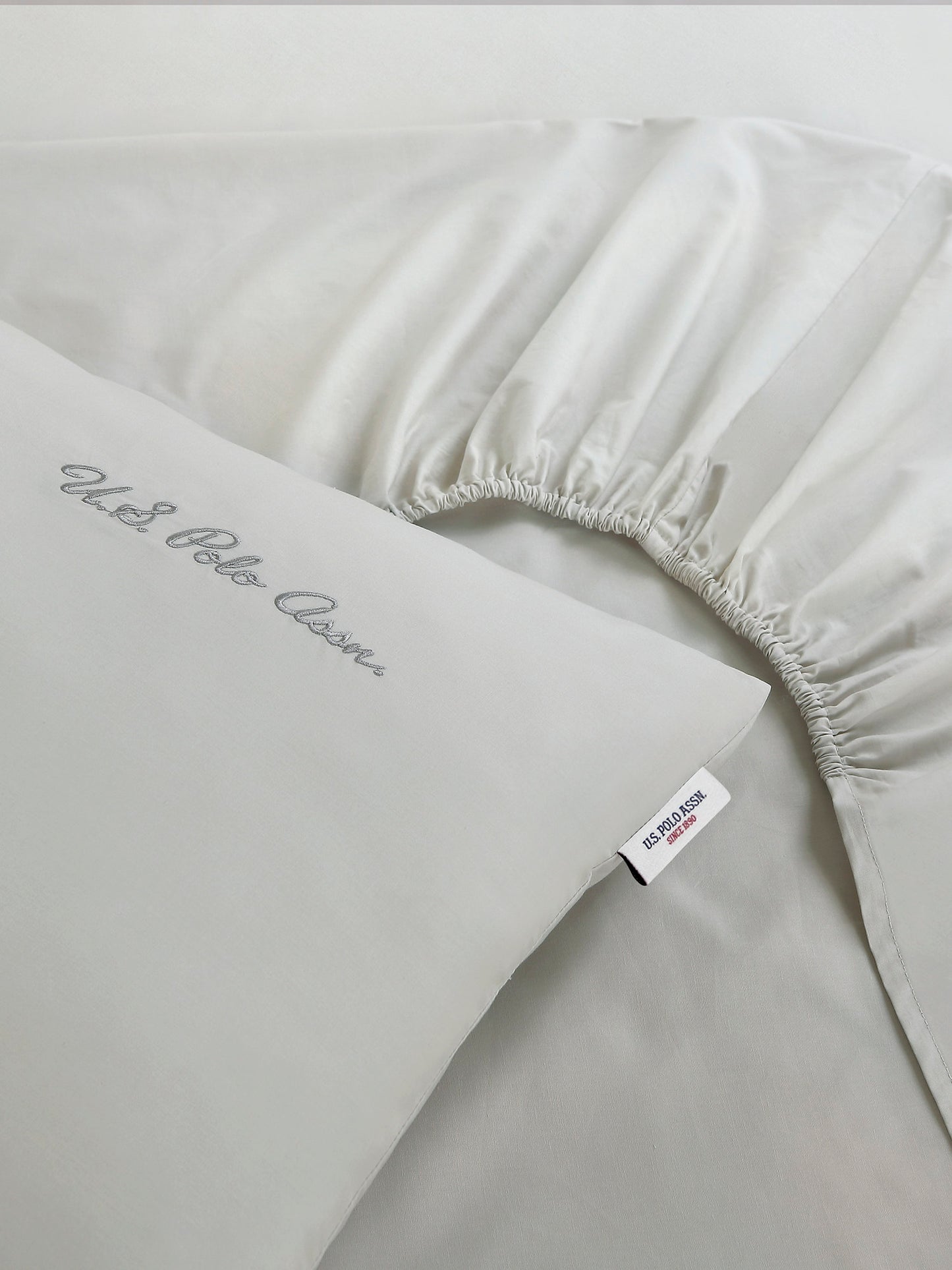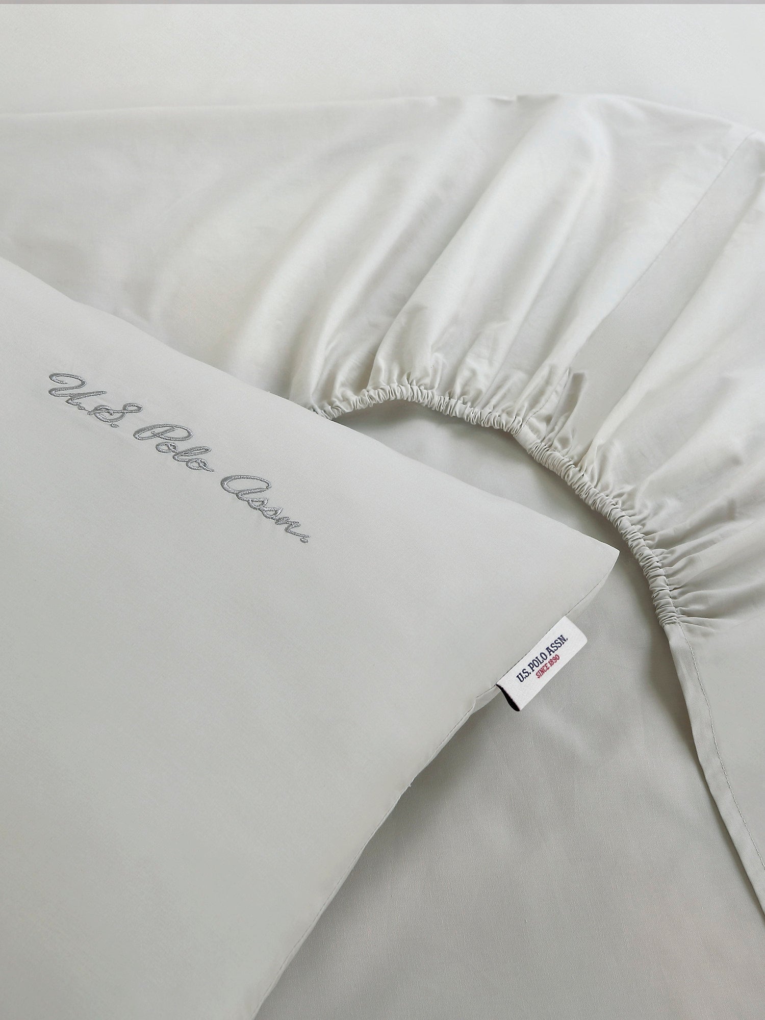 Elevate your bedroom with the U.S. Polo Assn. Pure Cotton Sheet & Pillowcase Set. Crafted from 100% cotton percale with a 200-thread count, these sheets offer breathable comfort and a soft, inviting texture. The tonal script embroidery on the pillowcase adds a refined touch, while the branded tab on the pillowcase seams subtly reflects the brand's heritage. Pair perfectly with crisp white bedding for a polished, elegant look. Perfect for a restful night’s sleep.