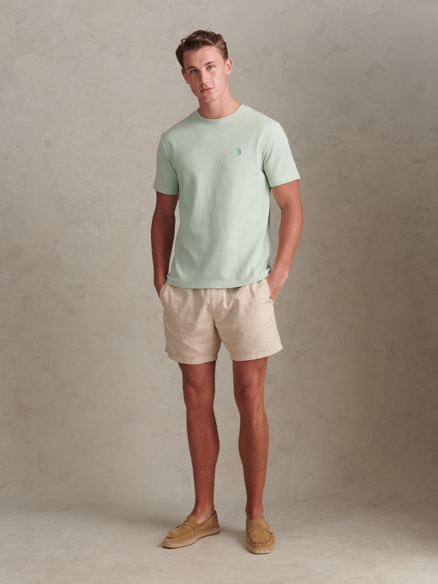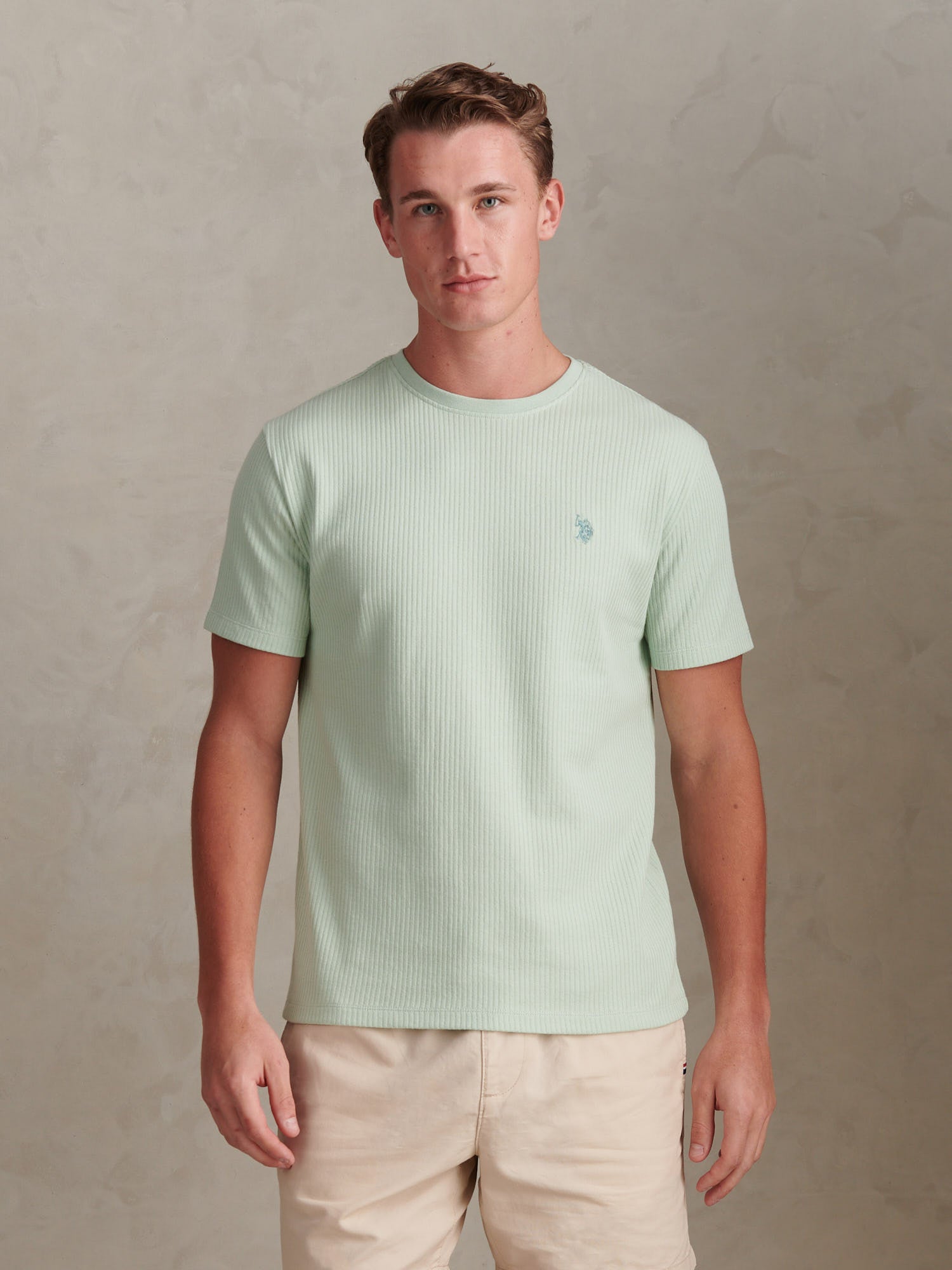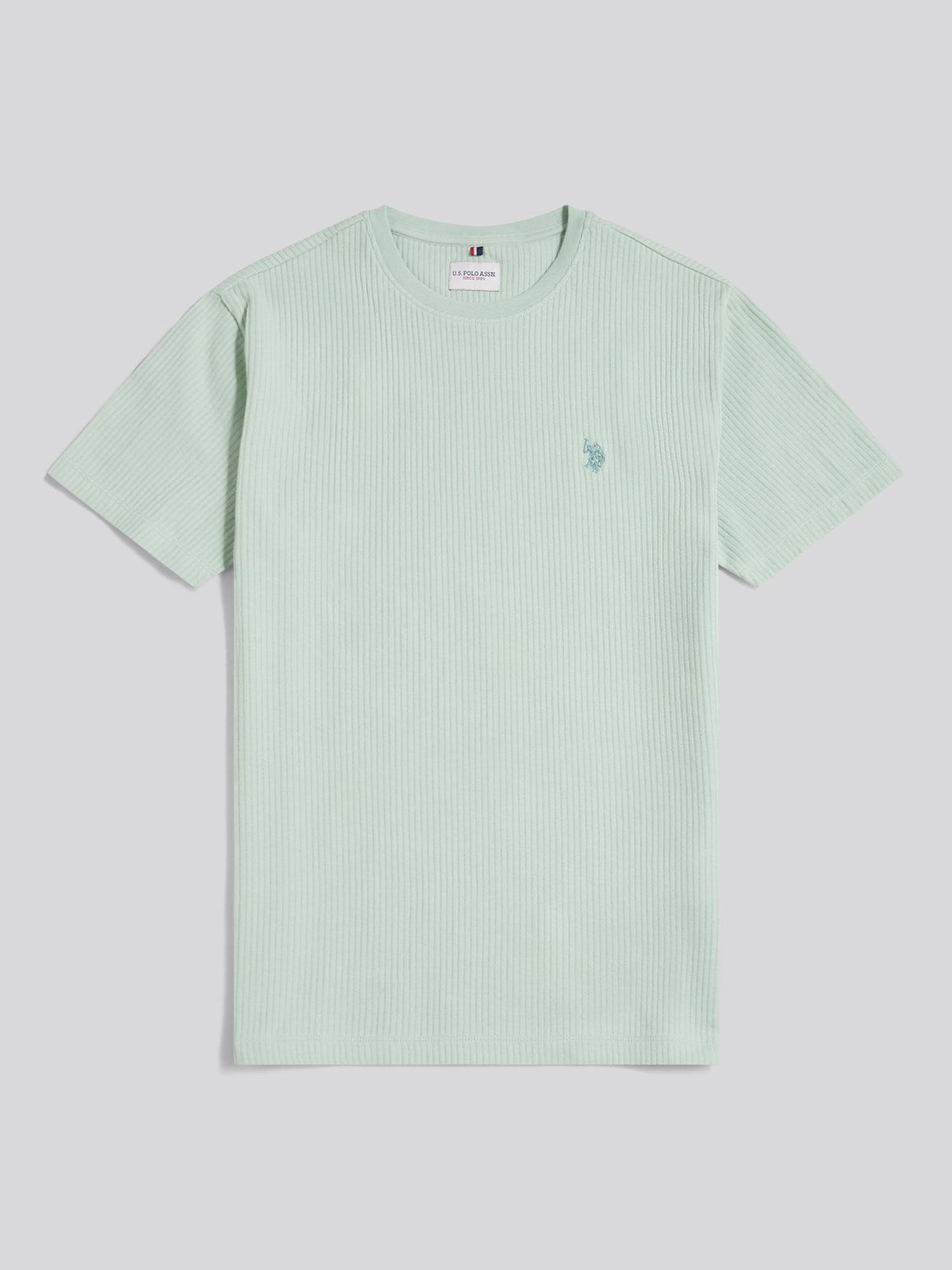 Bringing subtle texture to an everyday essential, the Mens Rib Texture T-Shirt channels U.S. Polo Assn.Õs sporting heritage into a clean, modern silhouette. Crafted from cotton rib jersey with a neat crew neckline, it is finished with Double Horsemen embroidery at the chest and a tri-colour tape detail inside the neck for a refined nod to the polo field. Wear it with relaxed denim, chinos or under a lightweight jacket when you want effortless polish with minimal effort.
