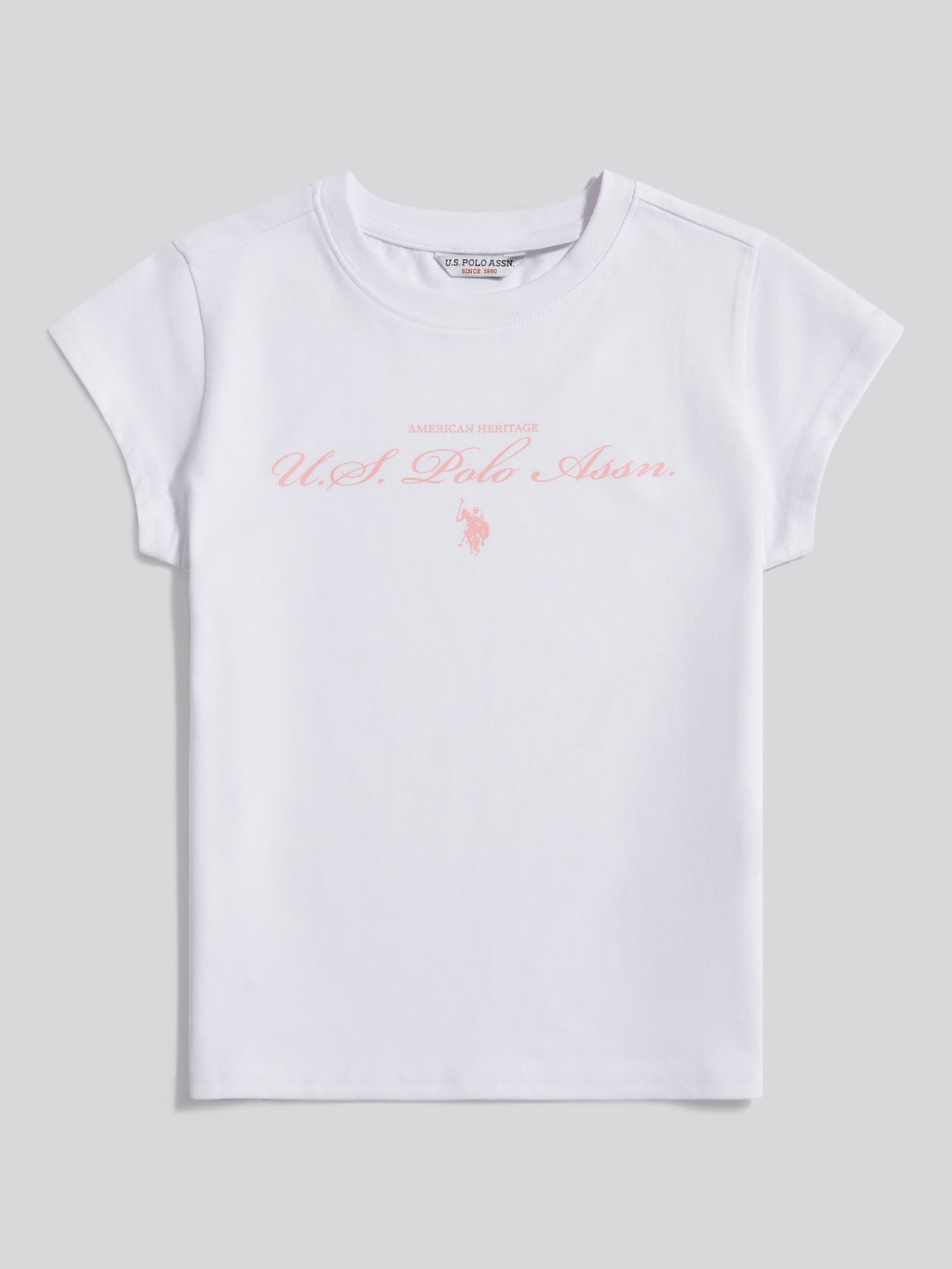 Bringing a touch of polo heritage to her everyday wardrobe, the Girls Script Logo Cap Sleeve T-Shirt from U.S. Polo Assn. is made for school, weekends and relaxed time at home. Soft cotton single jersey keeps it comfortable on the move, while the cap sleeves and script logo print across the chest add a sporty, feminine finish. Style with jeans, leggings or shorts and trainers for an easy outfit she can pull on again and again.