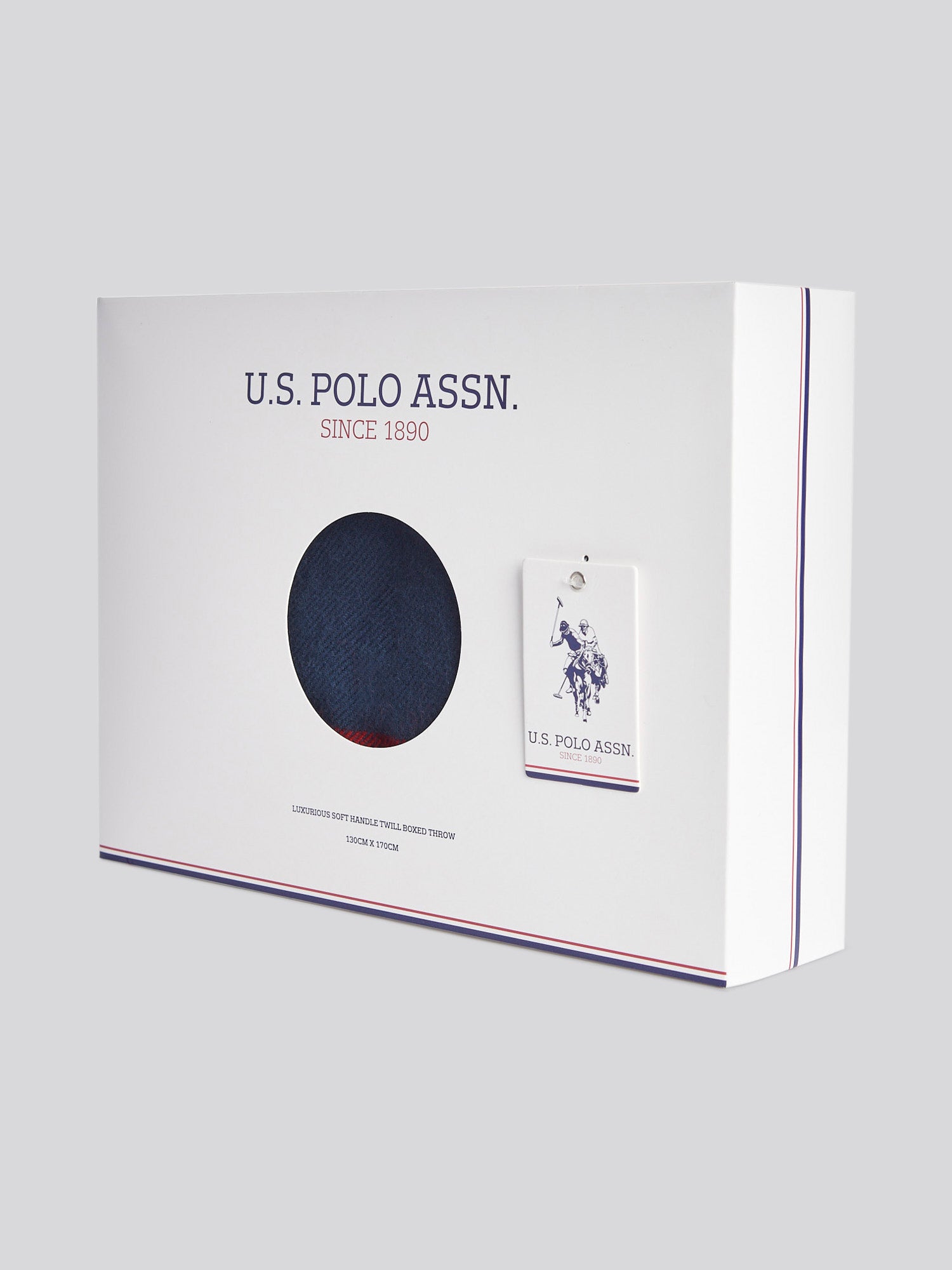 Elevate your living space with the U.S. Polo Assn. Luxurious Soft Handle Twill Boxed Throw. With its mohair-like softness and refined twill texture, this throw adds a touch of understated luxury to any room. The contrast border and delicate fringing create a timeless aesthetic, making it an ideal accessory for your sofa or bed. Pair it with complementary cushions to complete your sophisticated decor.