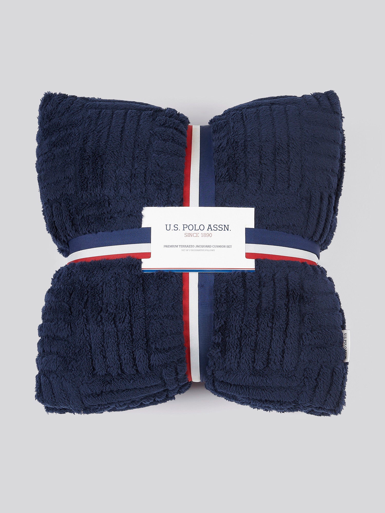 Add a touch of sophistication to your living space with the U.S. Polo Assn. Premium Terrazzo Jacquard Cushion Set. Featuring a luxurious jacquard sherpa finish and a striking 3D terrazzo design, this set of two decorative cushions seamlessly blends comfort with modern elegance. Perfect for elevating your interior décor, the cushions are finished with a signature branded tab and are beautifully wrapped in a tricolour grosgrain ribbon, making them an ideal gift option. 45x45cm