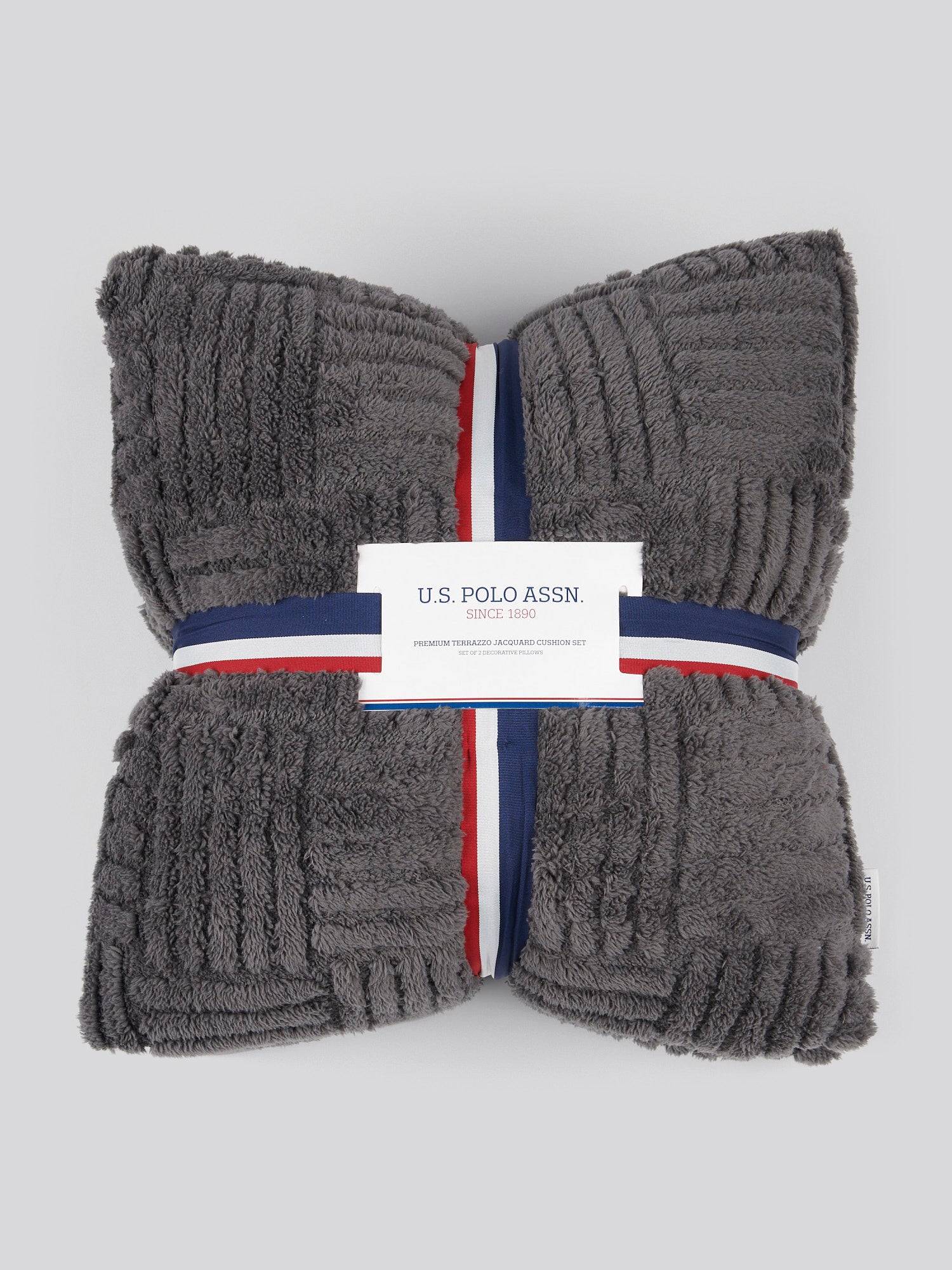 Add a touch of sophistication to your living space with the U.S. Polo Assn. Premium Terrazzo Jacquard Cushion Set. Featuring a luxurious jacquard sherpa finish and a striking 3D terrazzo design, this set of two decorative cushions seamlessly blends comfort with modern elegance. Perfect for elevating your interior décor, the cushions are finished with a signature branded tab and are beautifully wrapped in a tricolour grosgrain ribbon, making them an ideal gift option. 45x45cm