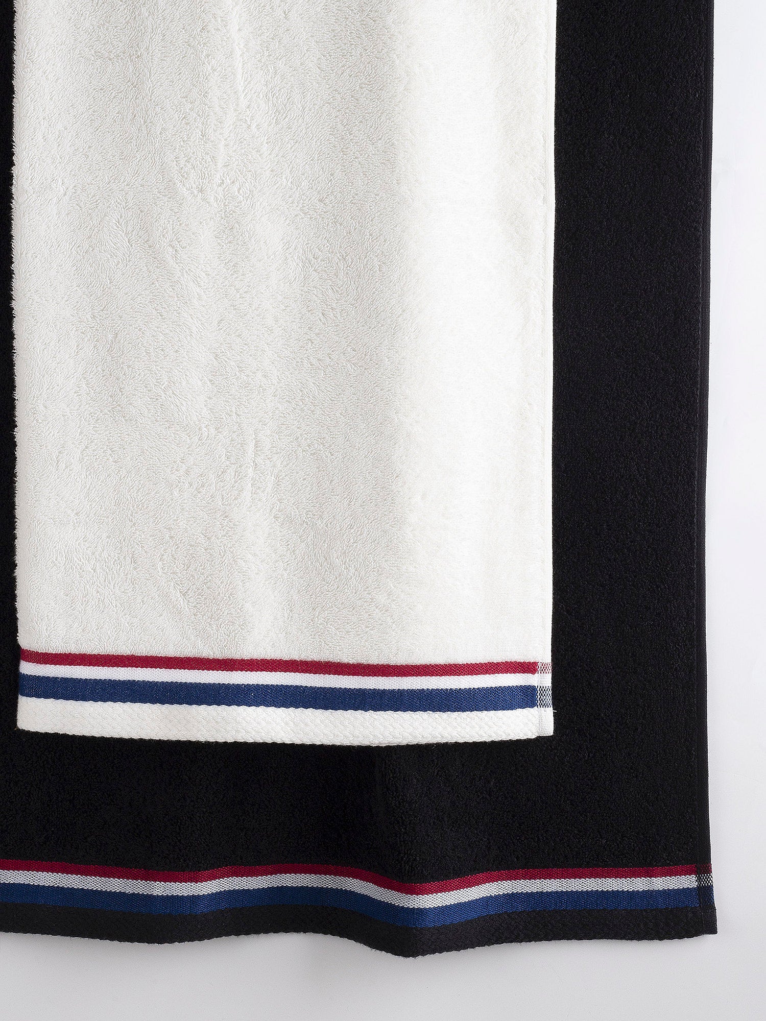 Transform your bathroom with the U.S. Polo Assn. Pure Cotton Brand Stripe Towel Bale. Designed with both style and function in mind, this luxurious set includes two bath towels offering superior softness and absorbency. The iconic tricolour border celebrates the brand’s heritage while adding a contemporary accent to your décor. Ideal for creating a cohesive look or as a thoughtful housewarming gift, these towels bring effortless sophistication to your home. 70x130cm