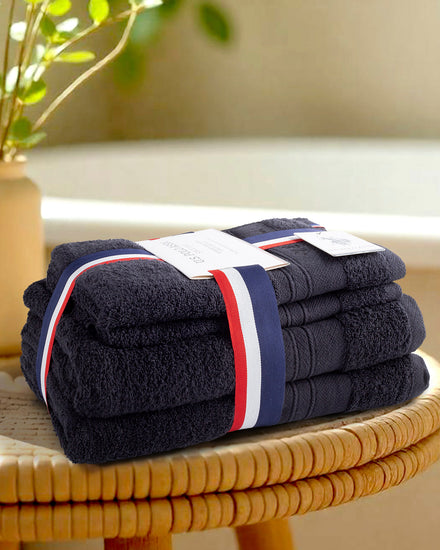 Wrap yourself in luxury with the U.S. Polo Assn. Super Soft Pure Cotton Towel Bale. Expertly crafted from 100% cotton, this four-piece set combines exceptional softness with superior absorbency. Featuring a subtle chevron detail and the brand’s signature tricolour tab, these towels add a touch of sophistication to your bathroom essentials. Perfect as a thoughtful gift or for elevating your own space, this set is a versatile must-have.