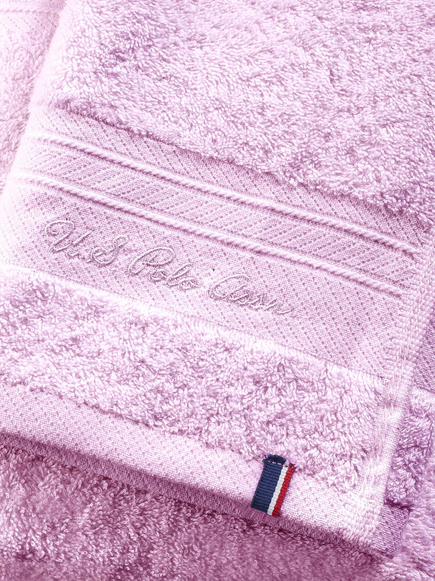 Redefine your everyday essentials with the U.S. Polo Assn. Super Soft Pure Cotton Towel Collection. Crafted from 100% premium cotton, these towels deliver unparalleled softness and outstanding absorbency. The refined tonal border and chevron detail add a touch of understated sophistication, while the iconic tricolour grosgrain tab reflects the brand’s rich heritage. Perfect for enhancing your bathroom decor or offering guests a luxurious experience.