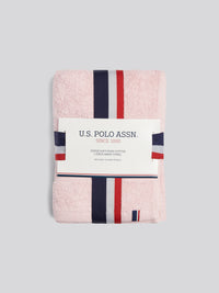 Redefine your everyday essentials with the U.S. Polo Assn. Super Soft Pure Cotton Towel Collection. Crafted from 100% premium cotton, these towels deliver unparalleled softness and outstanding absorbency. The refined tonal border and chevron detail add a touch of understated sophistication, while the iconic tricolour grosgrain tab reflects the brand’s rich heritage. Perfect for enhancing your bathroom decor or offering guests a luxurious experience.