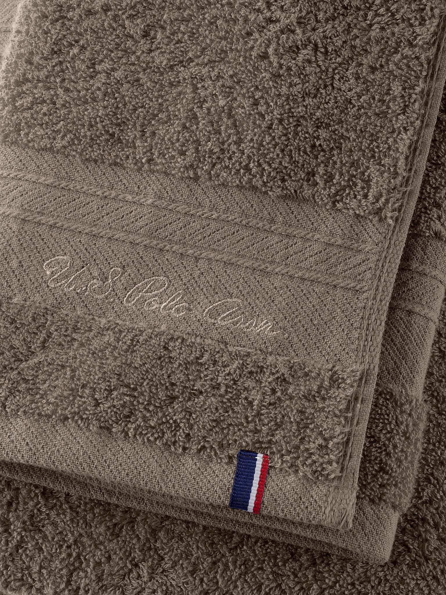 Redefine your everyday essentials with the U.S. Polo Assn. Super Soft Pure Cotton Towel Collection. Crafted from 100% premium cotton, these towels deliver unparalleled softness and outstanding absorbency. The refined tonal border and chevron detail add a touch of understated sophistication, while the iconic tricolour grosgrain tab reflects the brand’s rich heritage. Perfect for enhancing your bathroom decor or offering guests a luxurious experience.