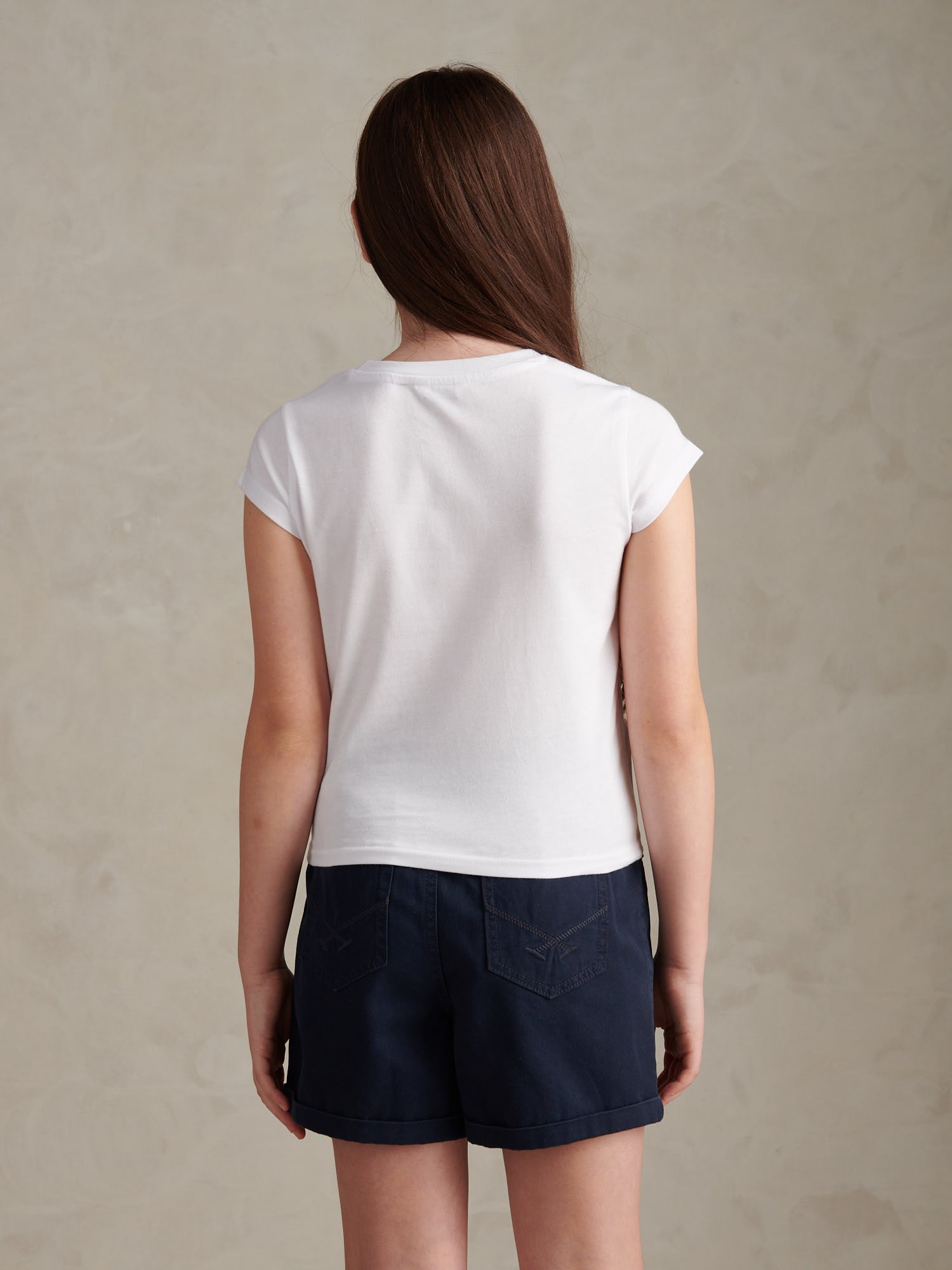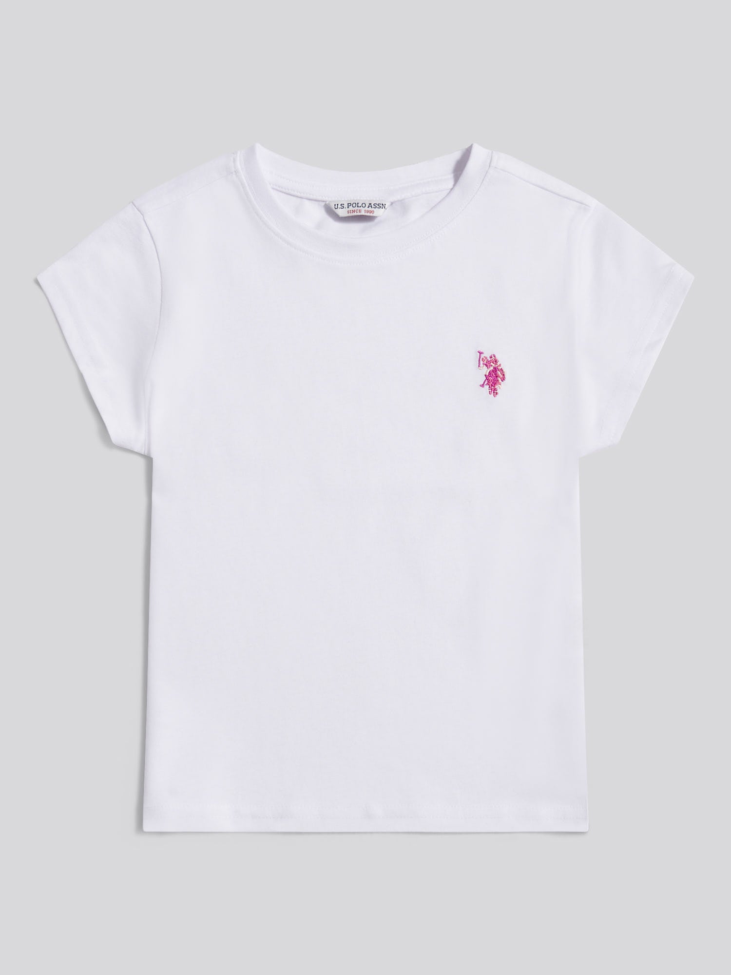 Girls Double Horsemen Cap Sleeve T-Shirt Bright White