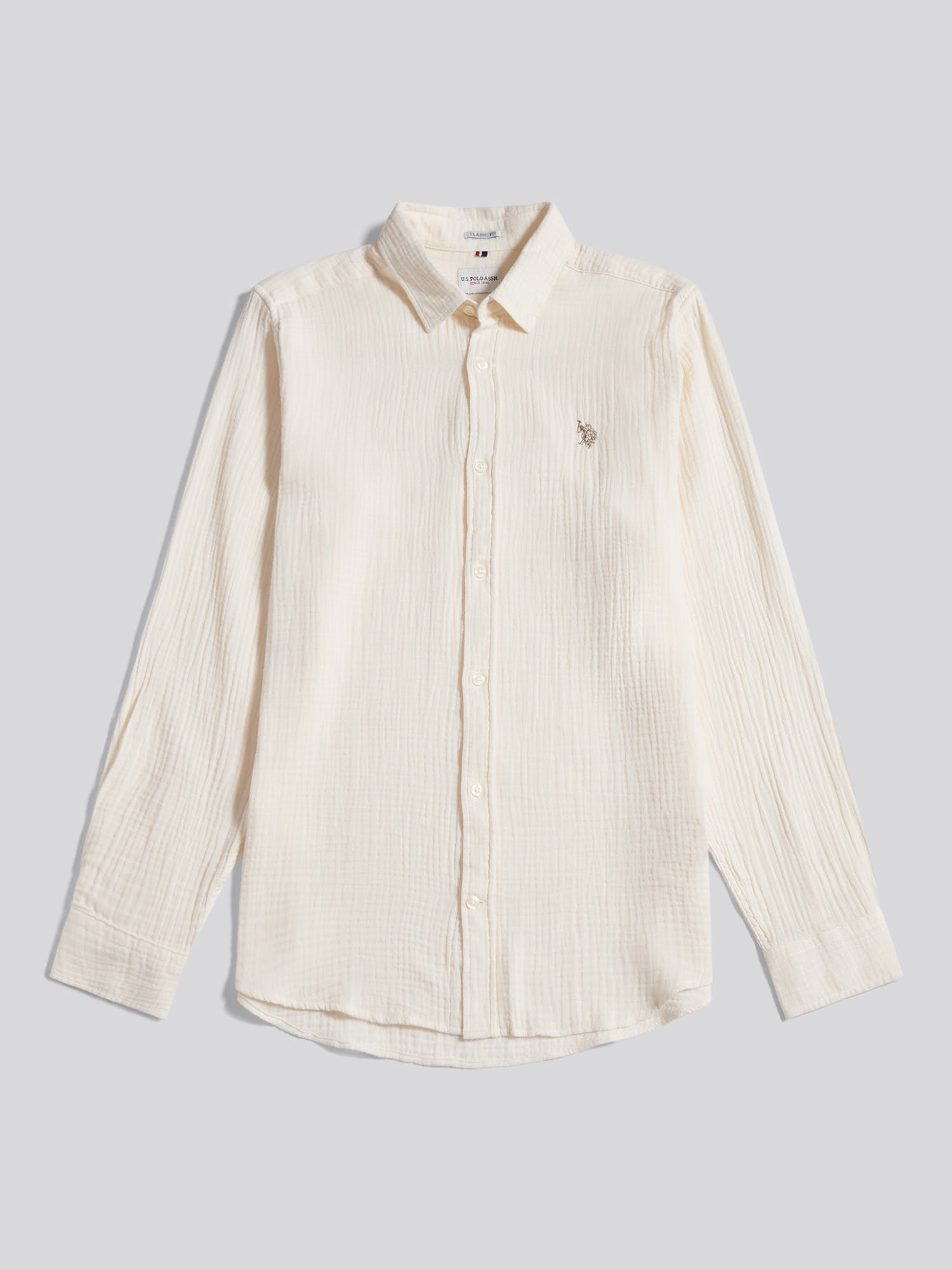 Blending laid-back ease with smart shirting, the Mens Double Cloth Long Sleeve Shirt brings U.S. Polo Assn.Õs polo heritage into an everyday classic. Cut in a classic fit from pure cotton double cloth with a subtle double horsemen chest embroidery and tricolour back-neck tape, it feels relaxed yet refined for workdays, weekends and everything in between. Wear it with chinos and loafers for an effortless smart-casual look, or layer it over a T-shirt with denim for a more relaxed take.
