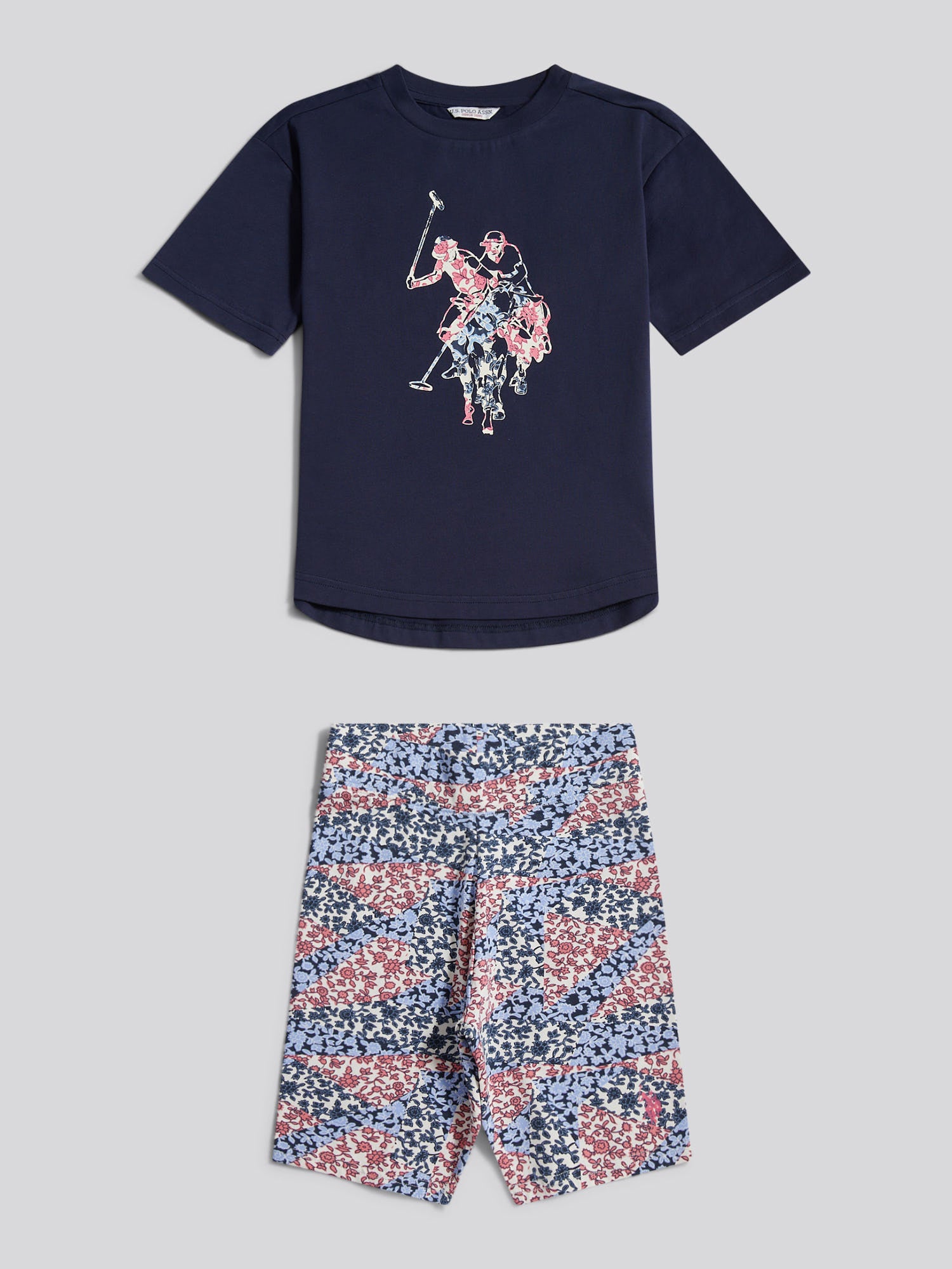 Refresh her warm-weather wardrobe with this Girls Drop Hem T-Shirt and Cycling Short Set from U.S. Polo Assn., pairing a relaxed tee with easy cycling shorts for days spent on the move. The pure cotton T-shirt feels soft against the skin, while the stretch cycling shorts are made for biking, exploring and laid-back weekends. Wear the set together with trainers for effortless head-to-toe style, or mix and match the tee with jeans and the shorts with hoodies for even more outfit options.