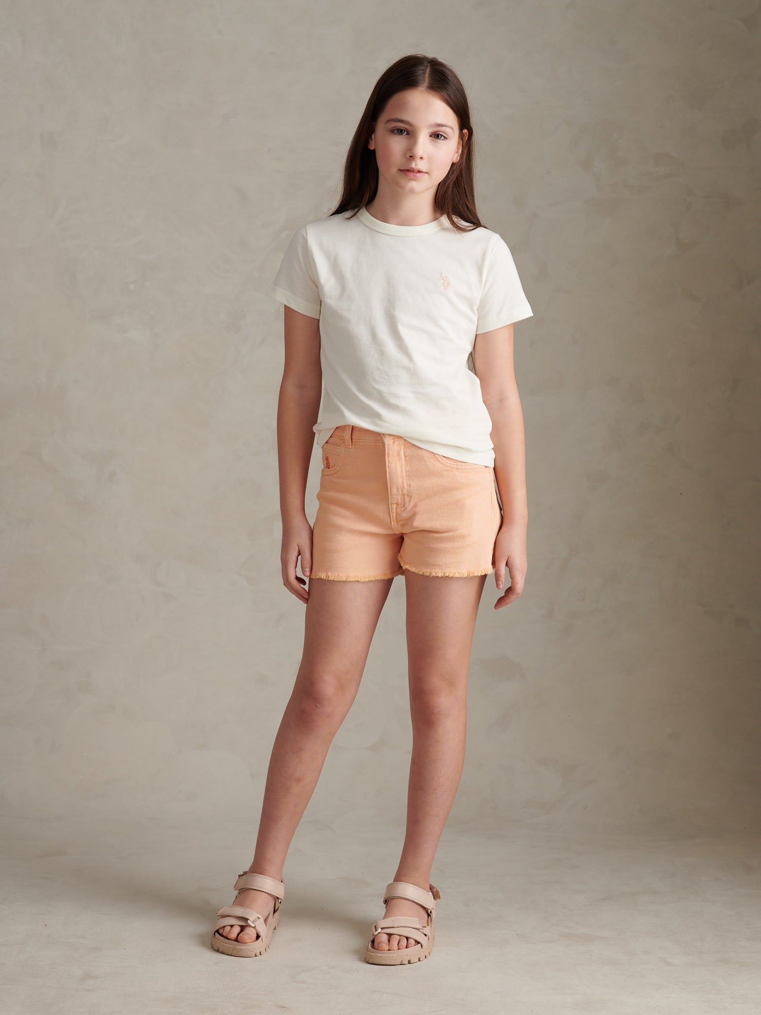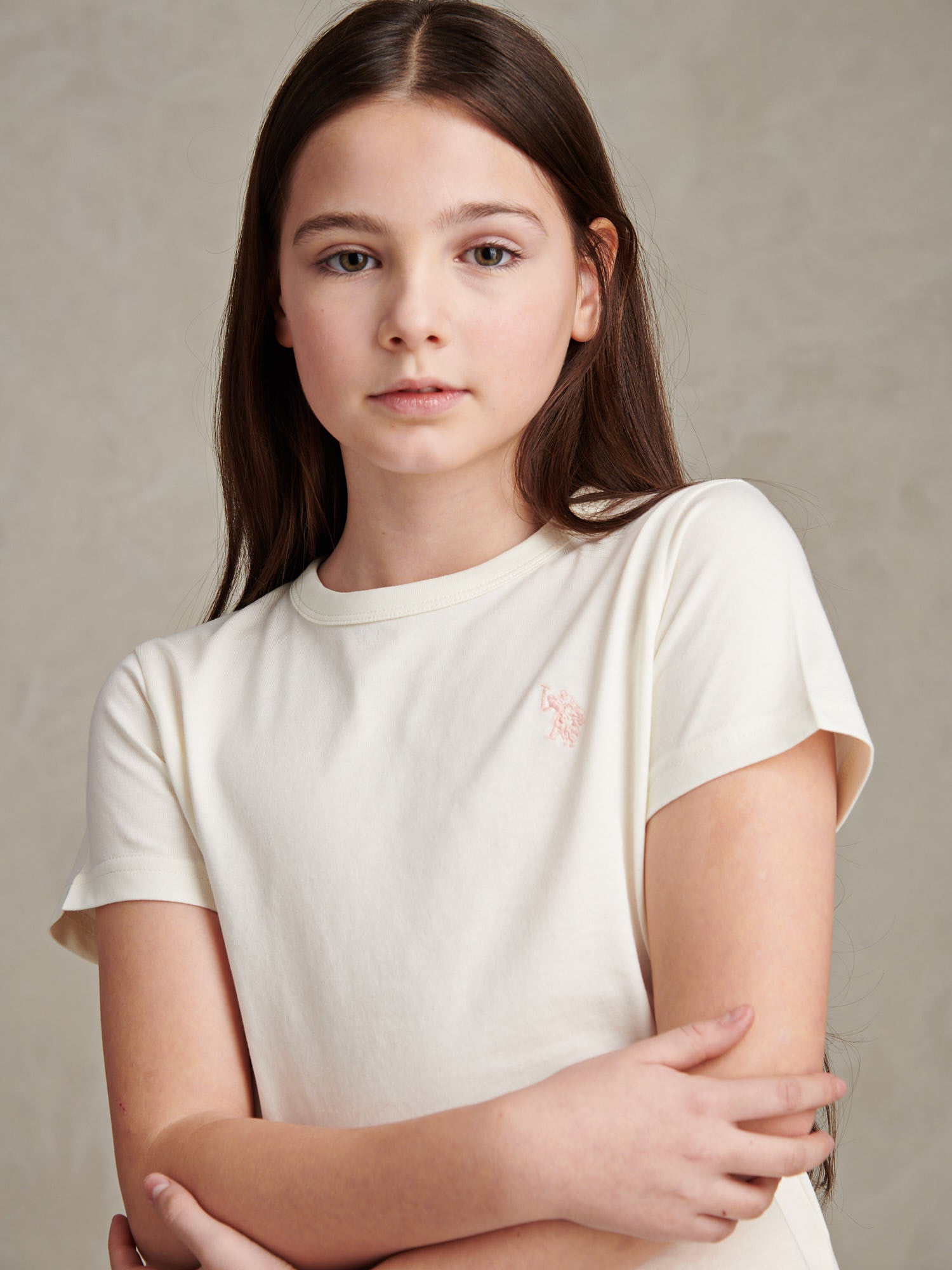 Bringing a touch of polo heritage to her everyday wardrobe, the Girls Cotton Double Horsemen T-Shirt from U.S. Polo Assn. is made for school days, weekend plans and everything in between. Soft cotton single jersey and a regular fit keep her comfortable on the move, while the neat crew neck and short sleeves layer easily under hoodies, jackets or gilets. Finished with the signature Double Horsemen chest embroidery, it pairs effortlessly with jeans, leggings, joggers or shorts for a clean, sporty look any day of the week.