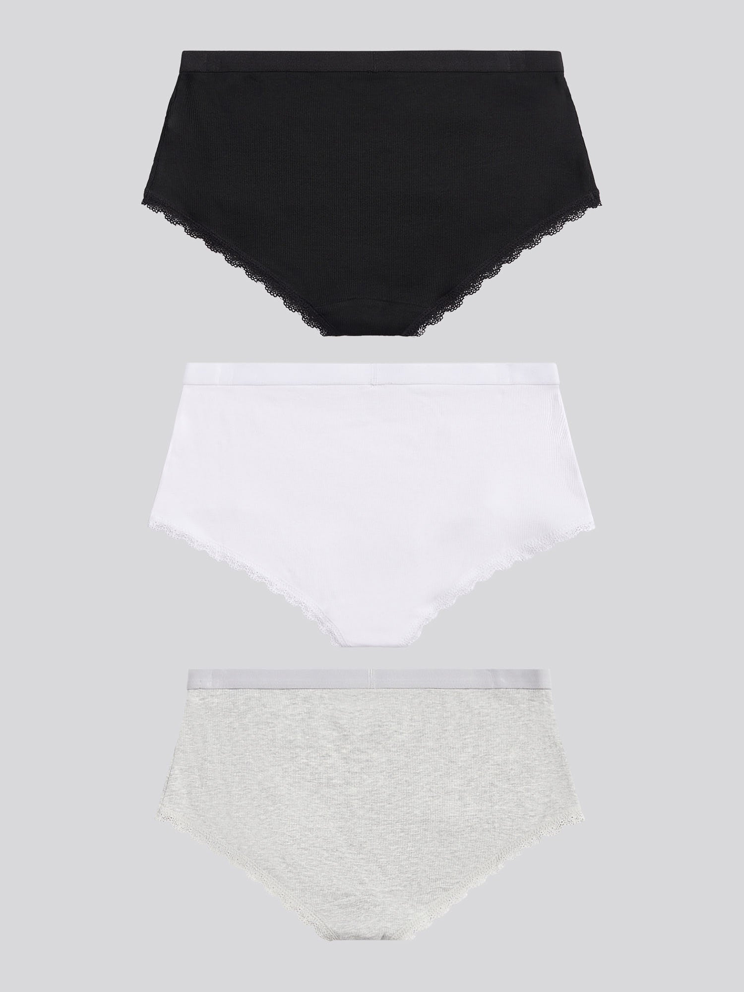 Womens 3 Pack Lace Trim Rib Shortie in Black / White / Grey