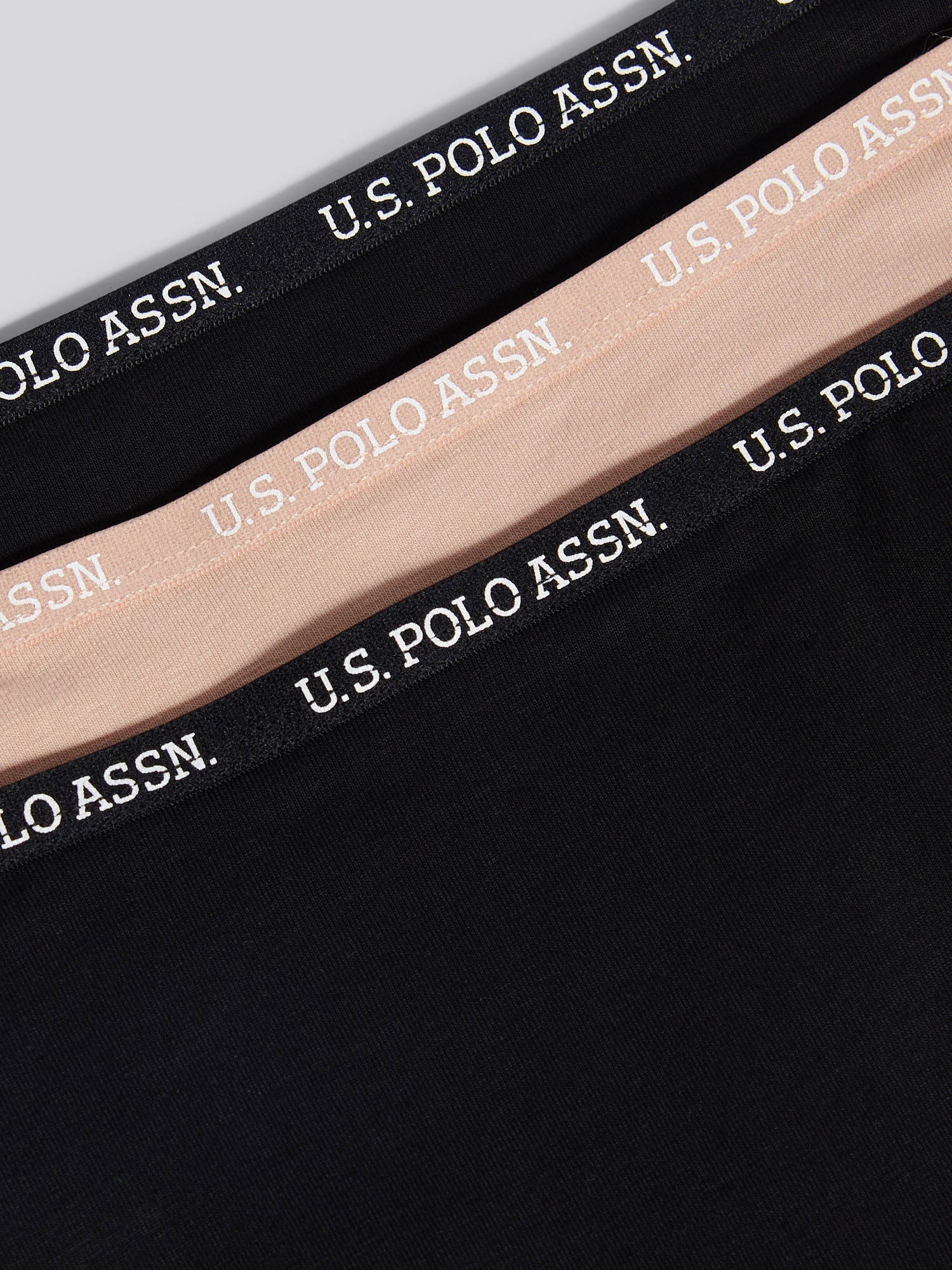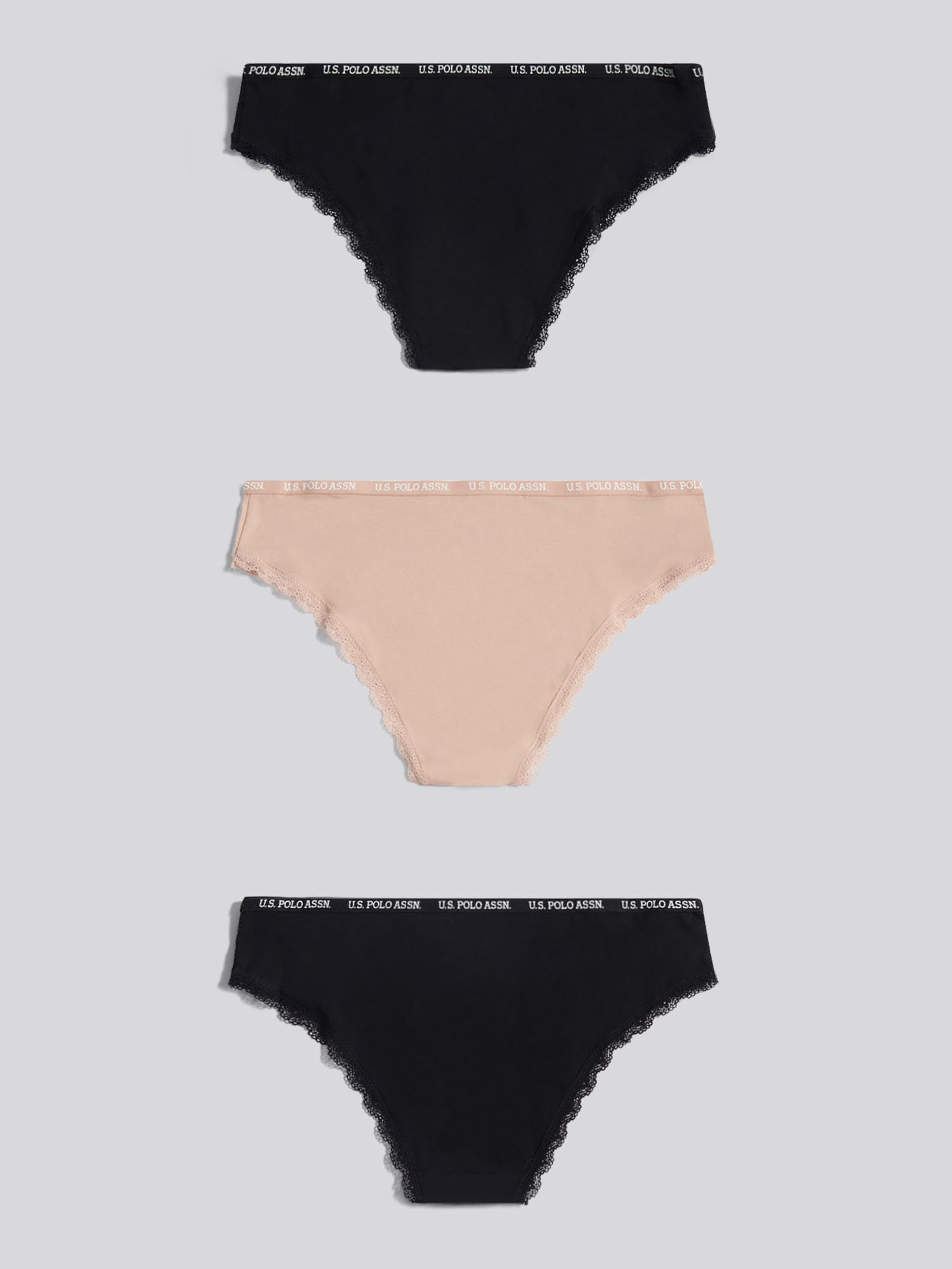Designed to balance refined comfort with feminine detail, the U.S. Polo Assn. 3 Pack Lace Trim Thin Waistband Bikini Brief brings a timeless touch to your everyday essentials. Featuring subtle branding and delicate lace trim, these briefs elevate daily wear with heritage-inspired confidence. Style beneath relaxed tailoring or a matching loungewear set for a smooth, uninterrupted finish.