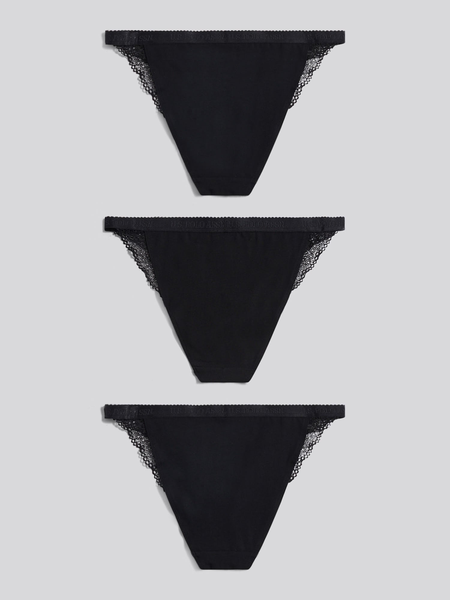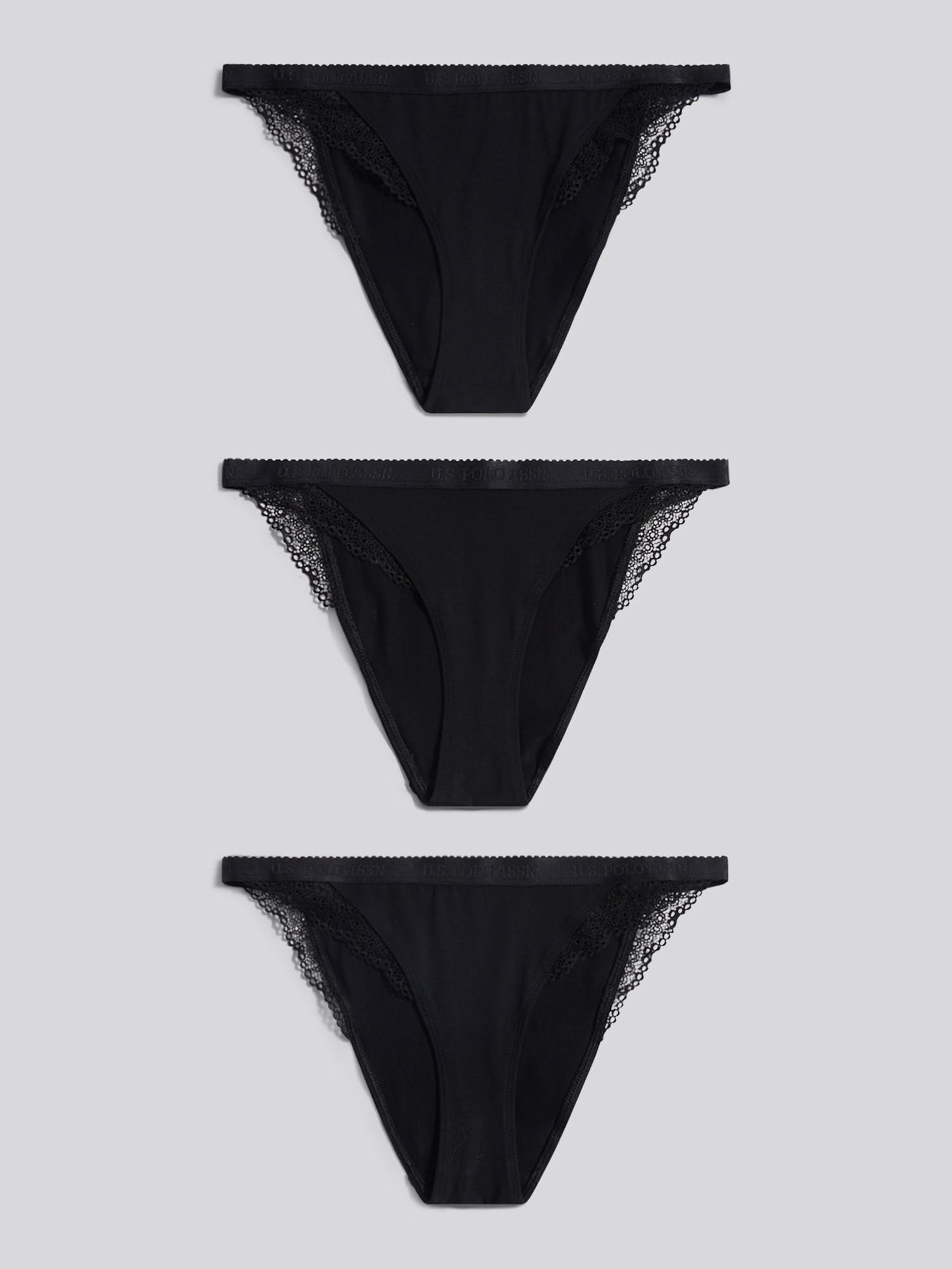 With a refined mix of everyday comfort and elevated design, the U.S. Polo Assn. 3 Pack Scallop Edge Lace Trim Bikini Brief brings a touch of sophistication to your underwear drawer. The signature jacquard waistband and delicate lace trim blend subtle branding with soft texture. Pair with a coordinating bralette for a polished foundation that feels as good as it looks.