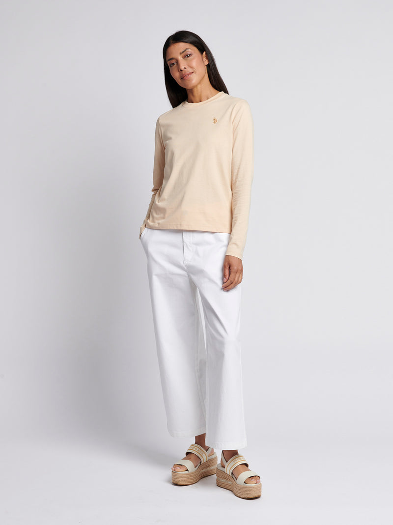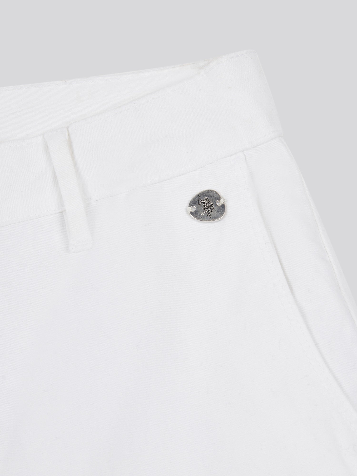 Embrace casual sophistication with these U.S. Polo Assn. Womens Ankle Wide Leg Chino Trousers, crafted for a relaxed yet refined look. Pair with a tucked-in tee or a lightweight knit for an effortlessly polished style.