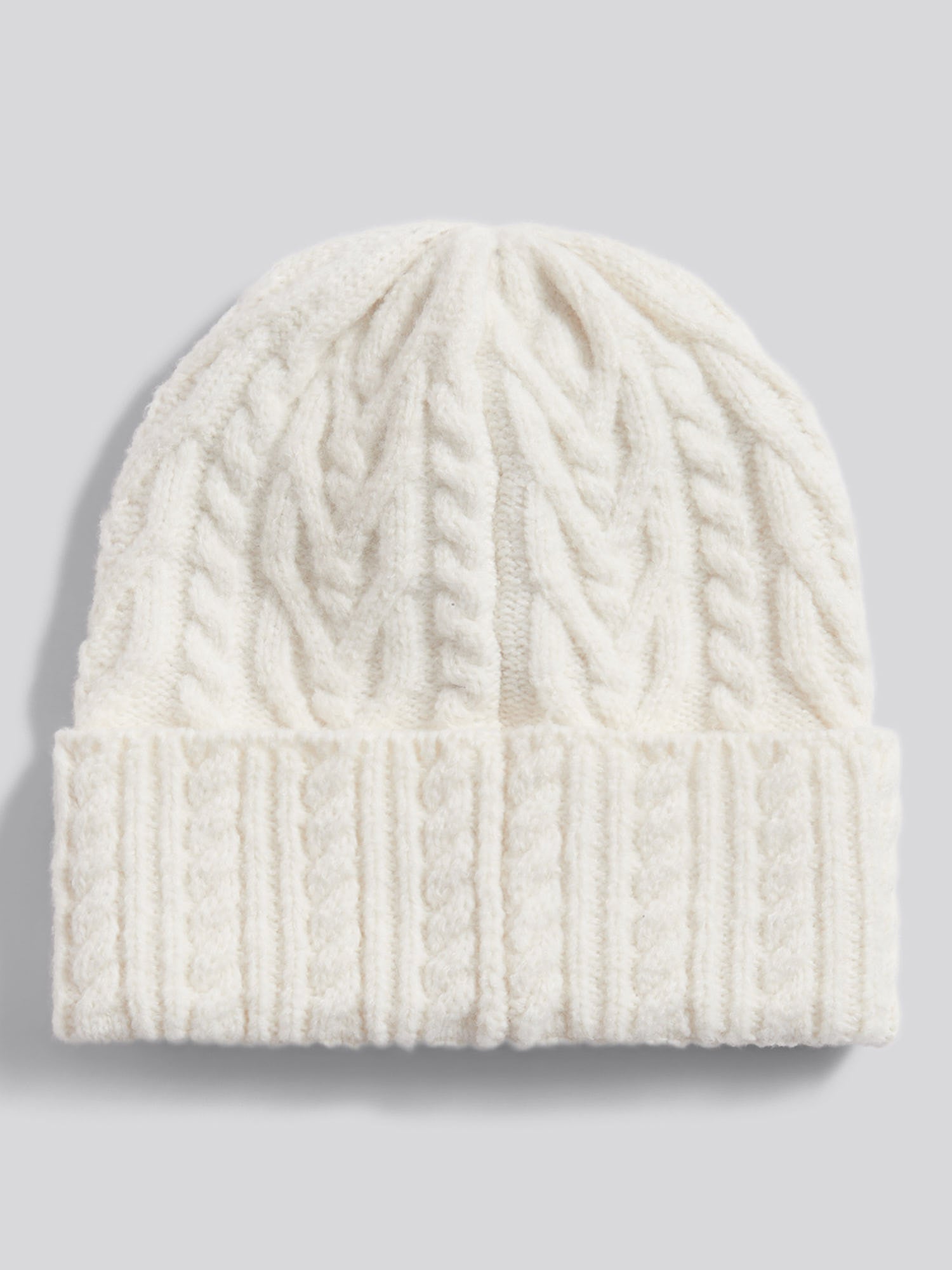 Womens Aran Cable Knit Beanie in Marshmallow