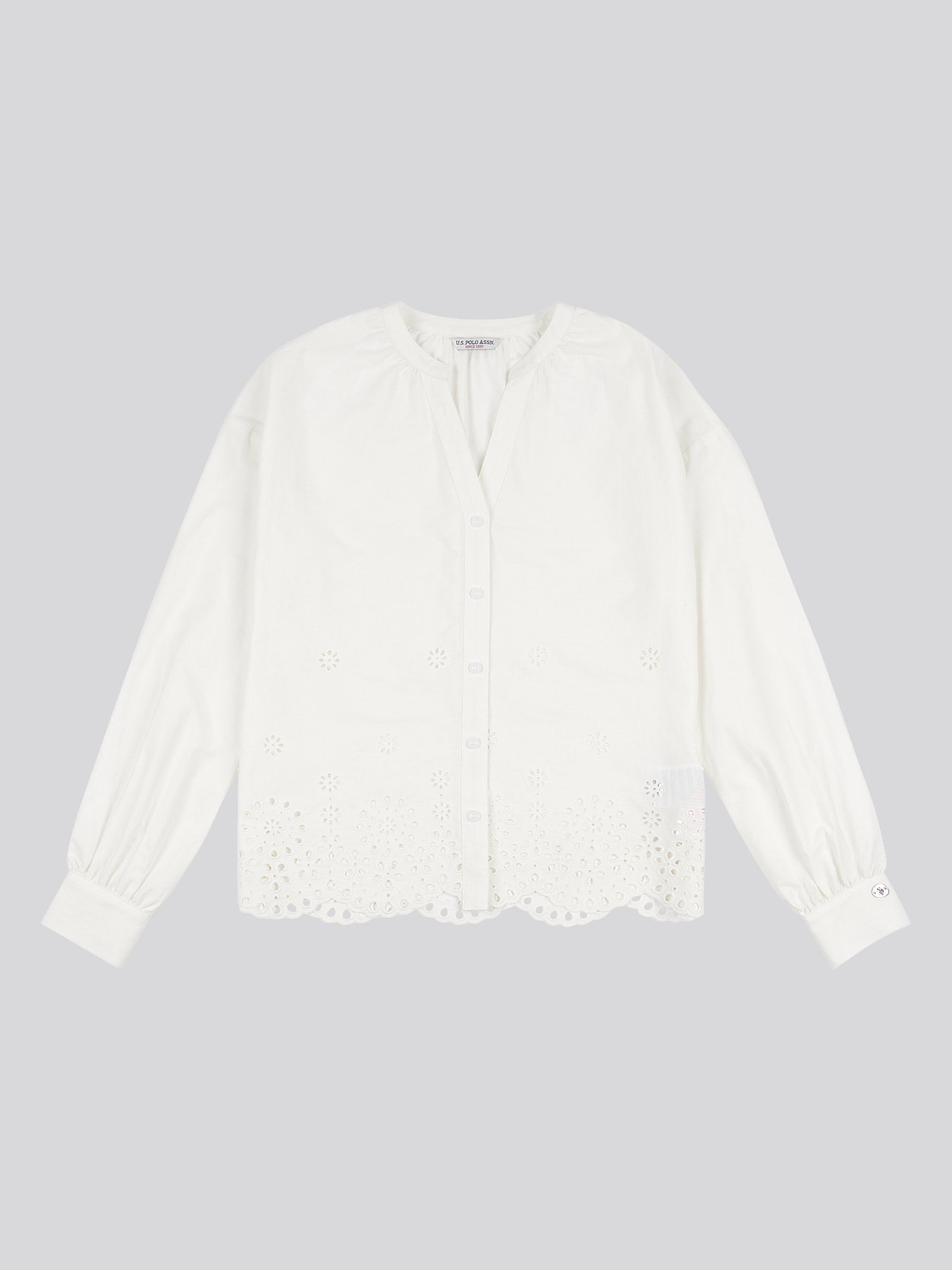 Elevating casual shapes, this U.S. Polo Assn. Womens Blouse features a beautiful scalloped broderie hem for an extra touch of wonderment.