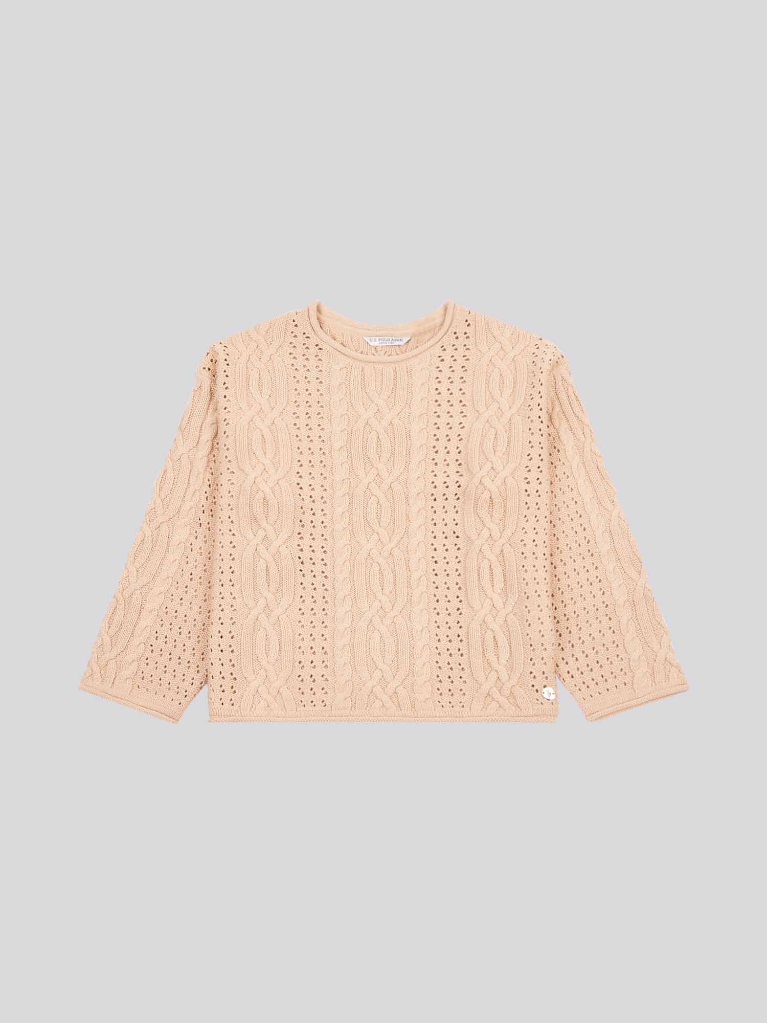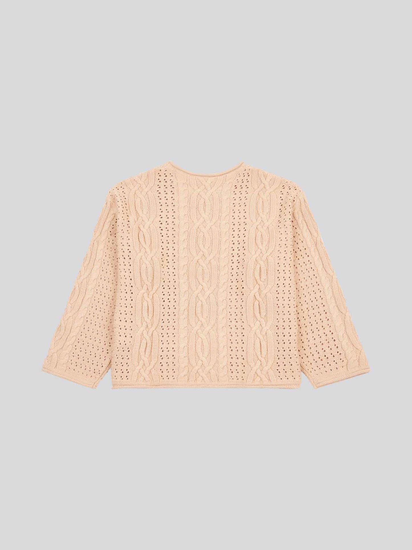 This chunky cable open knit jumper brings effortless sophistication to cooler days, blending heritage style with contemporary open-knit detailing. Perfect for layering, this piece adds texture and warmth to any outfit.