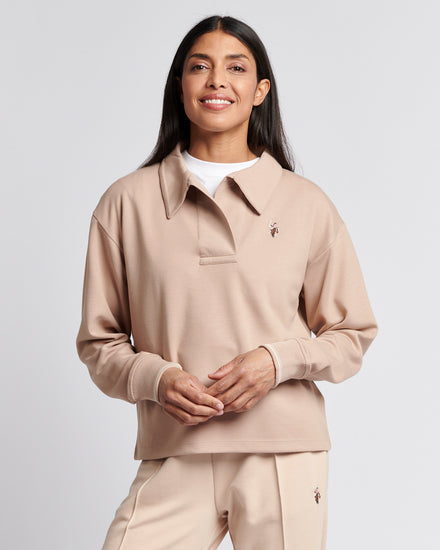 Womens Collared Stripe Sweatshirt in Smoke Gray