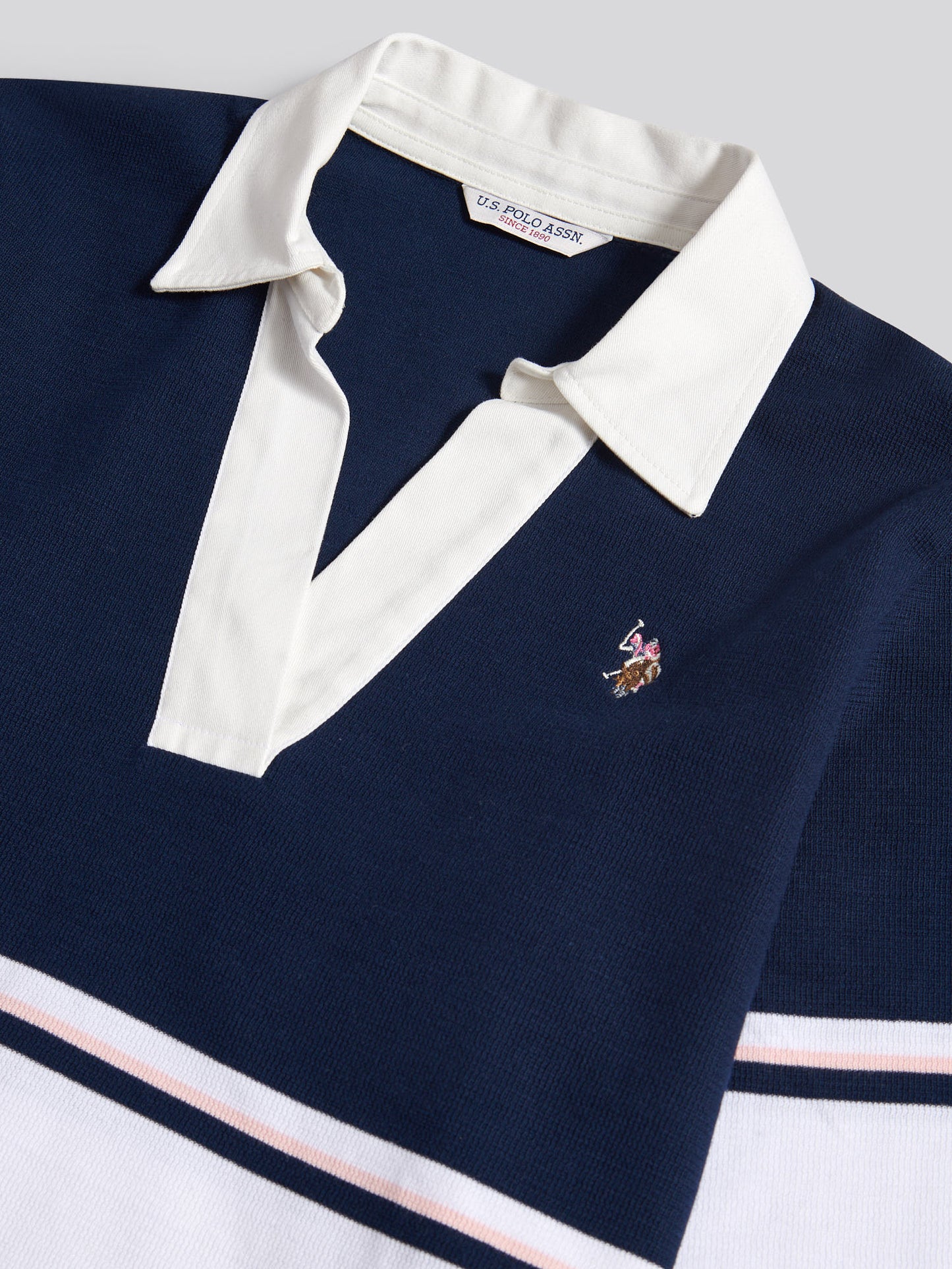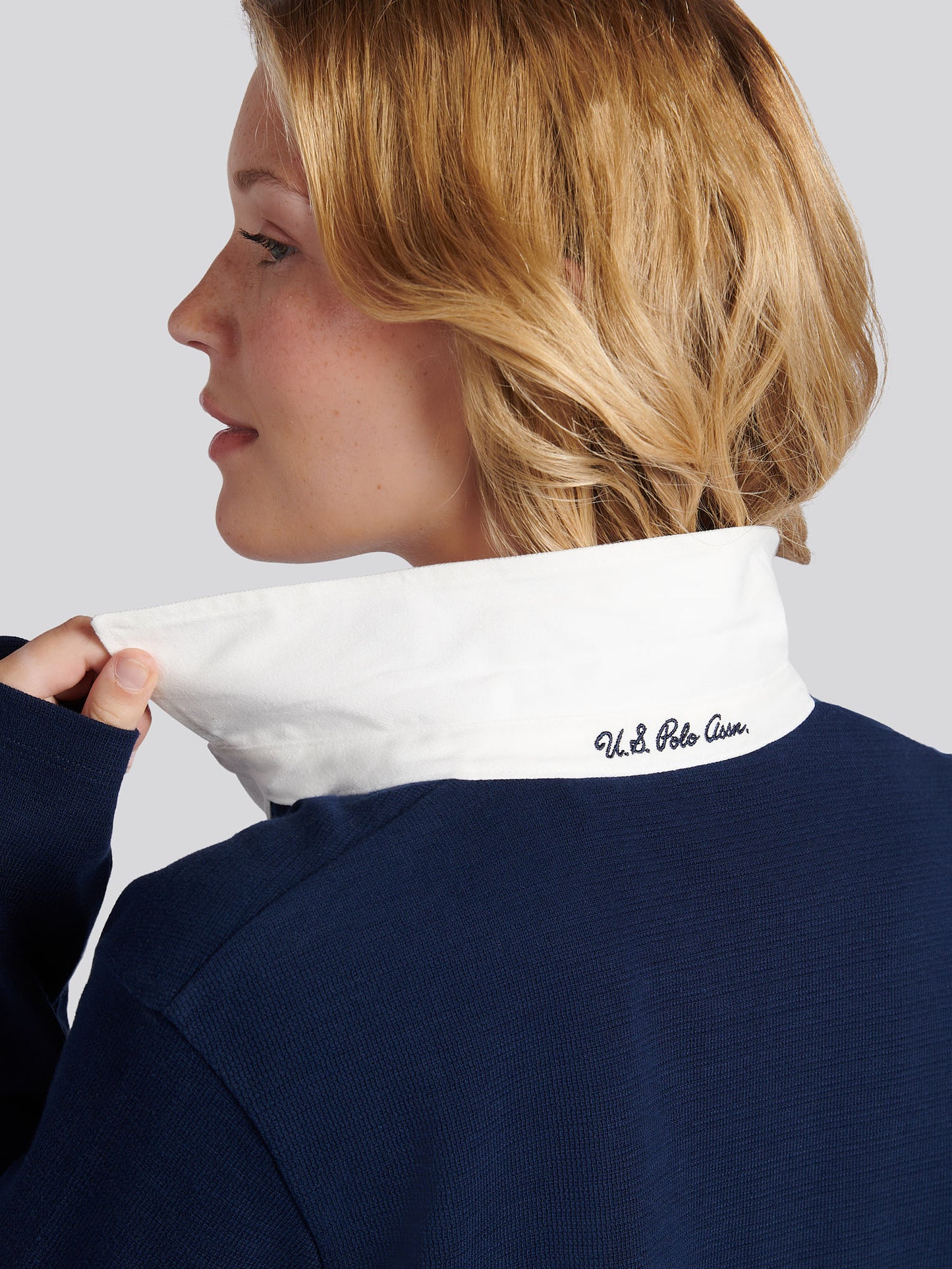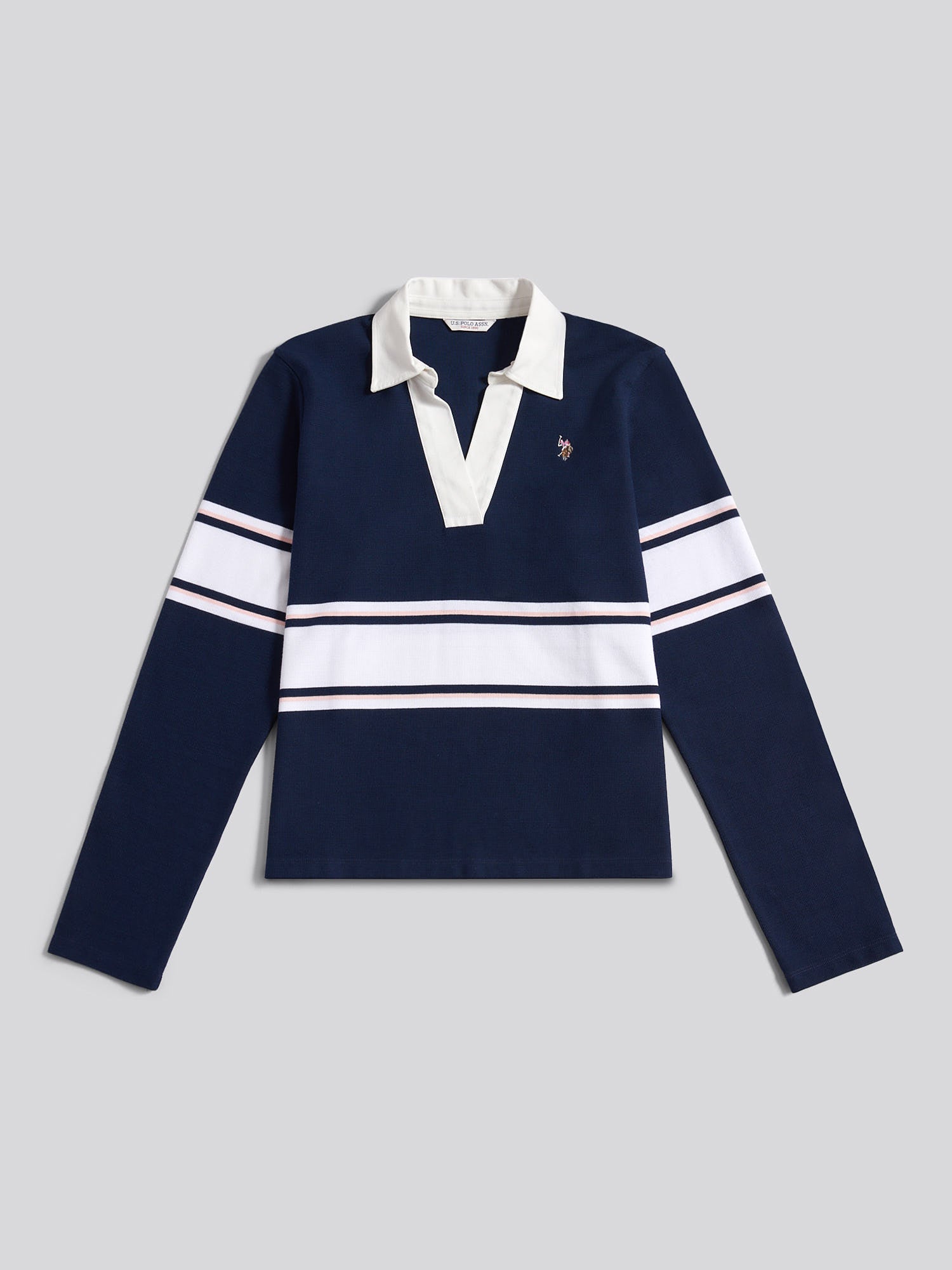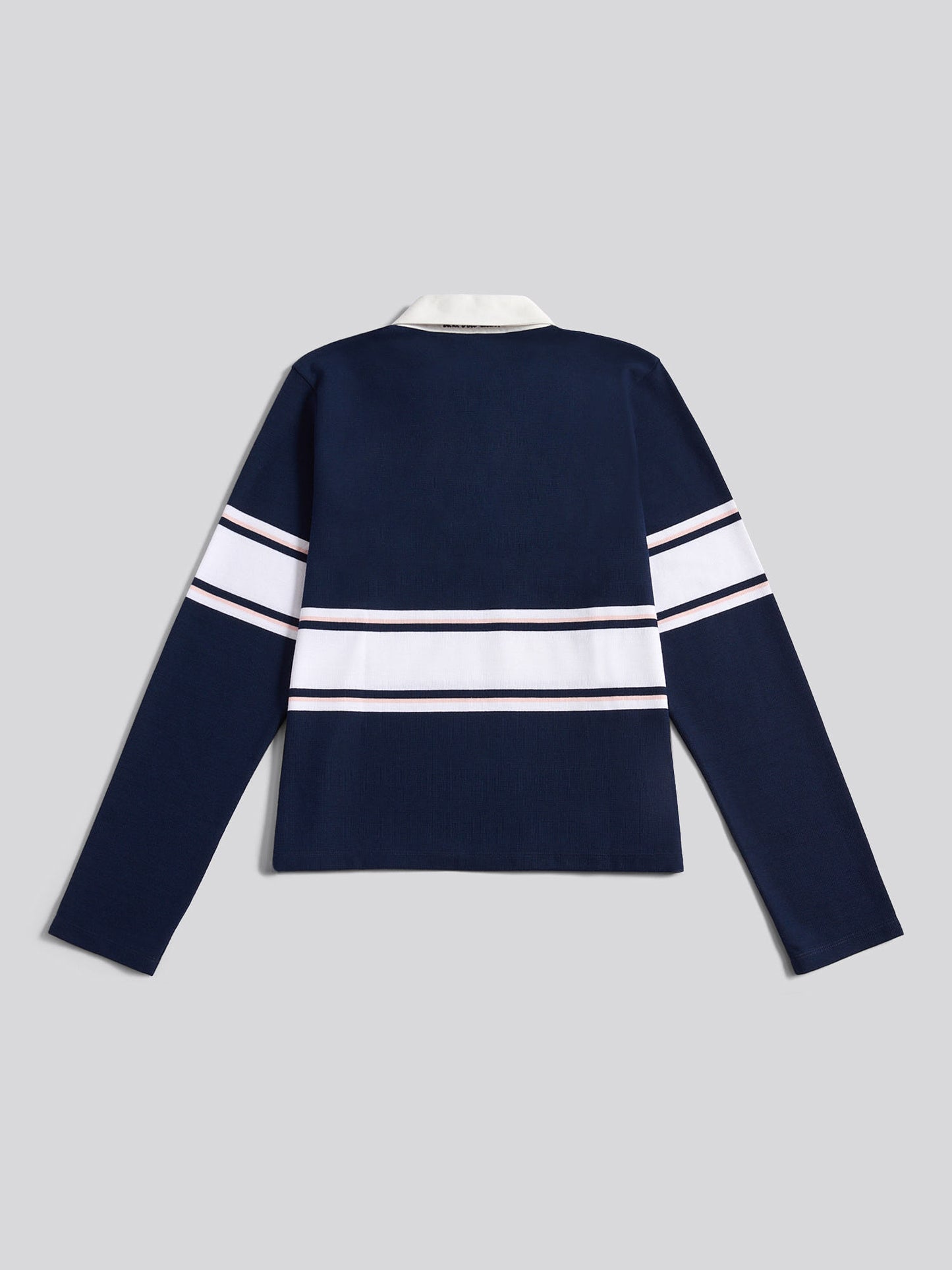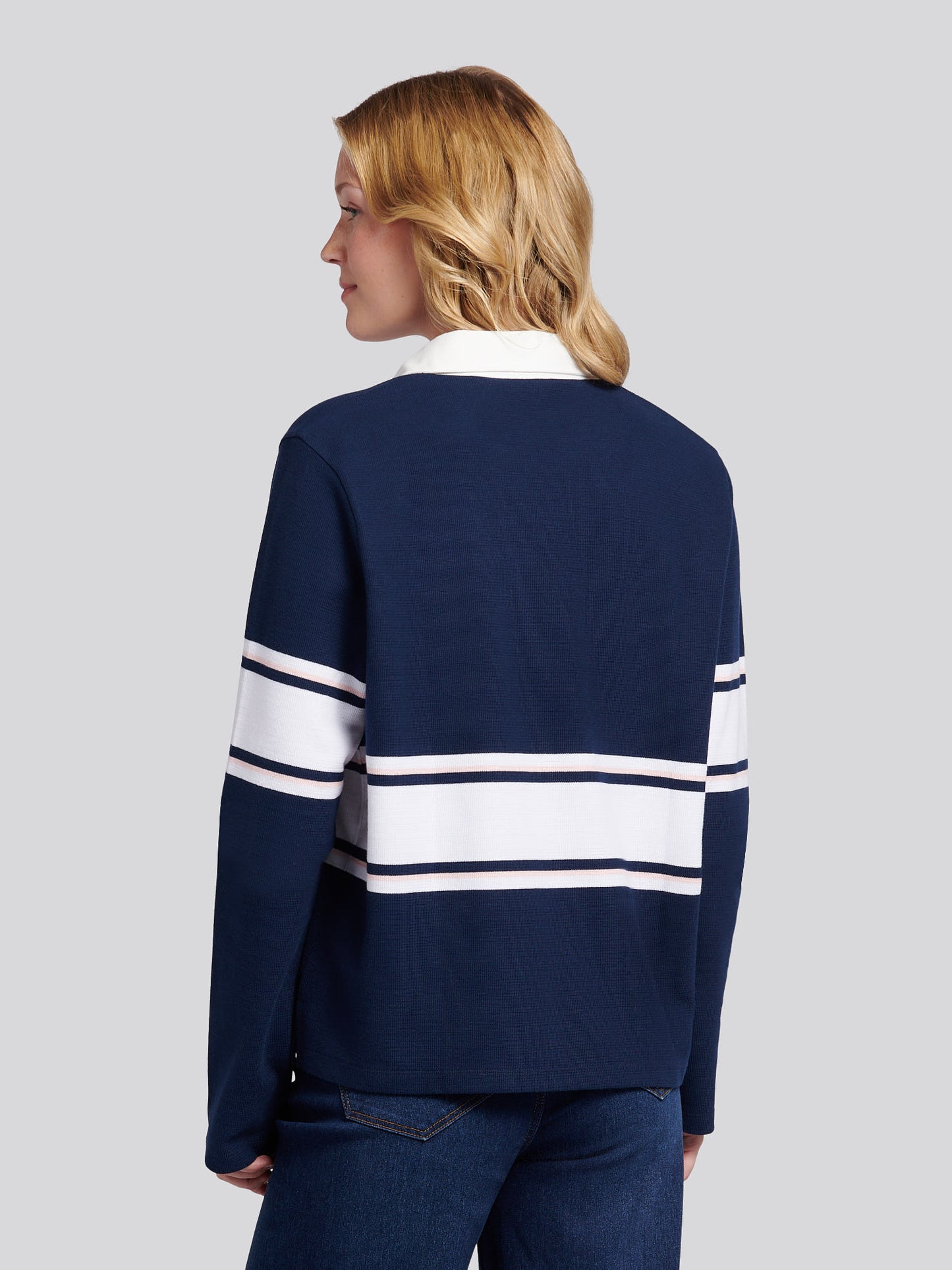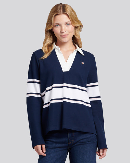 Womens Contrast Collar Stripe Rugby Top in Navy Iris