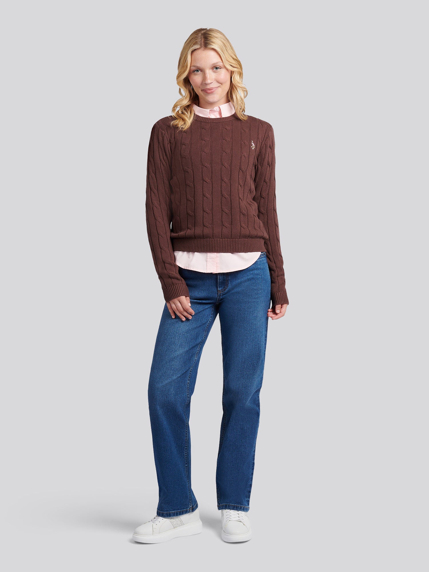 Perfect transitional dressing with the U.S. Polo Assn. Womens Crew Neck Cable Knit Jumper.