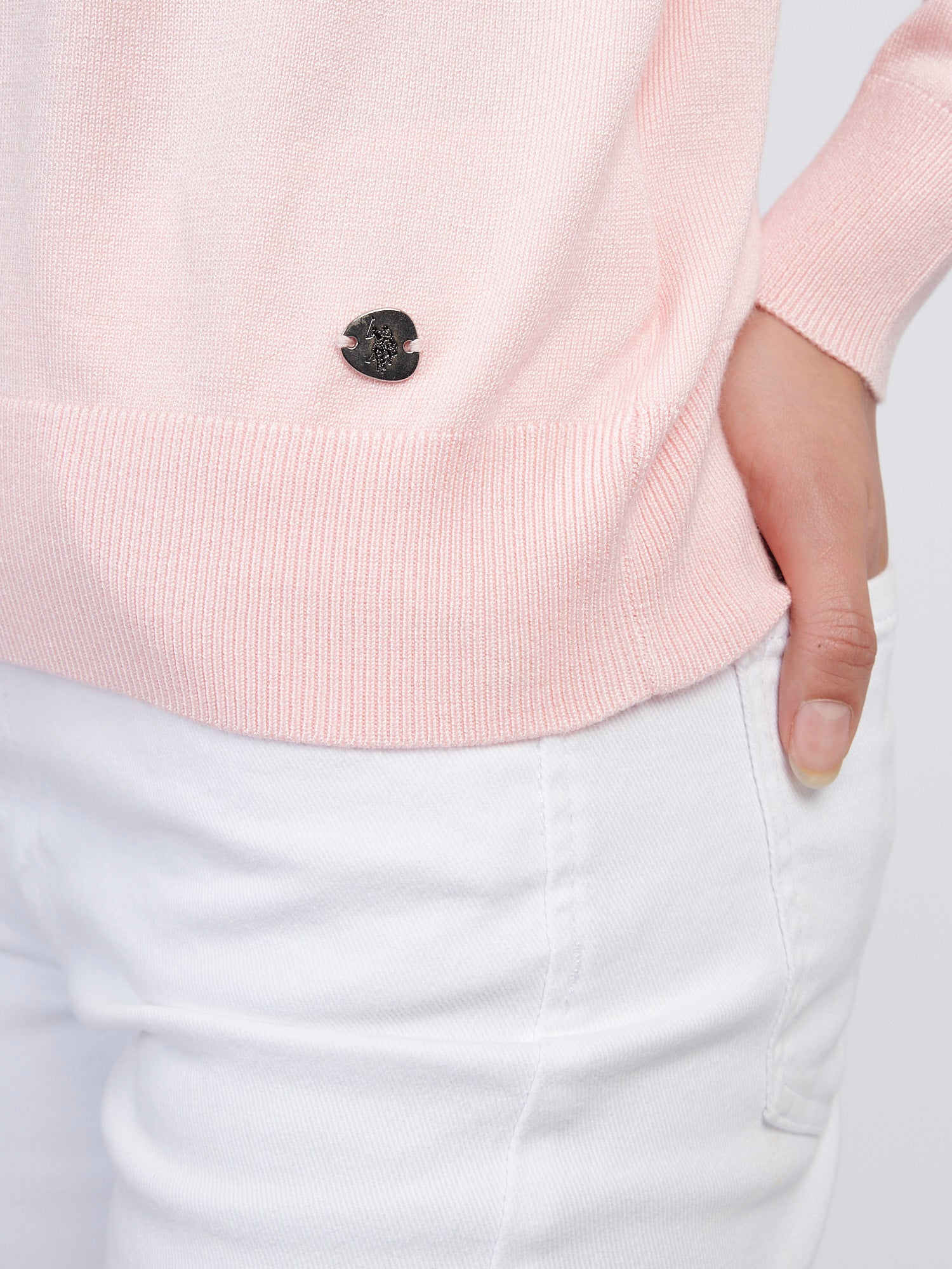 Cool and casual, the U.S. Polo Assn. Womens Crew Neck Sweatshirt is crafted from soft, light yarn for a comfortable layer during warmer months.