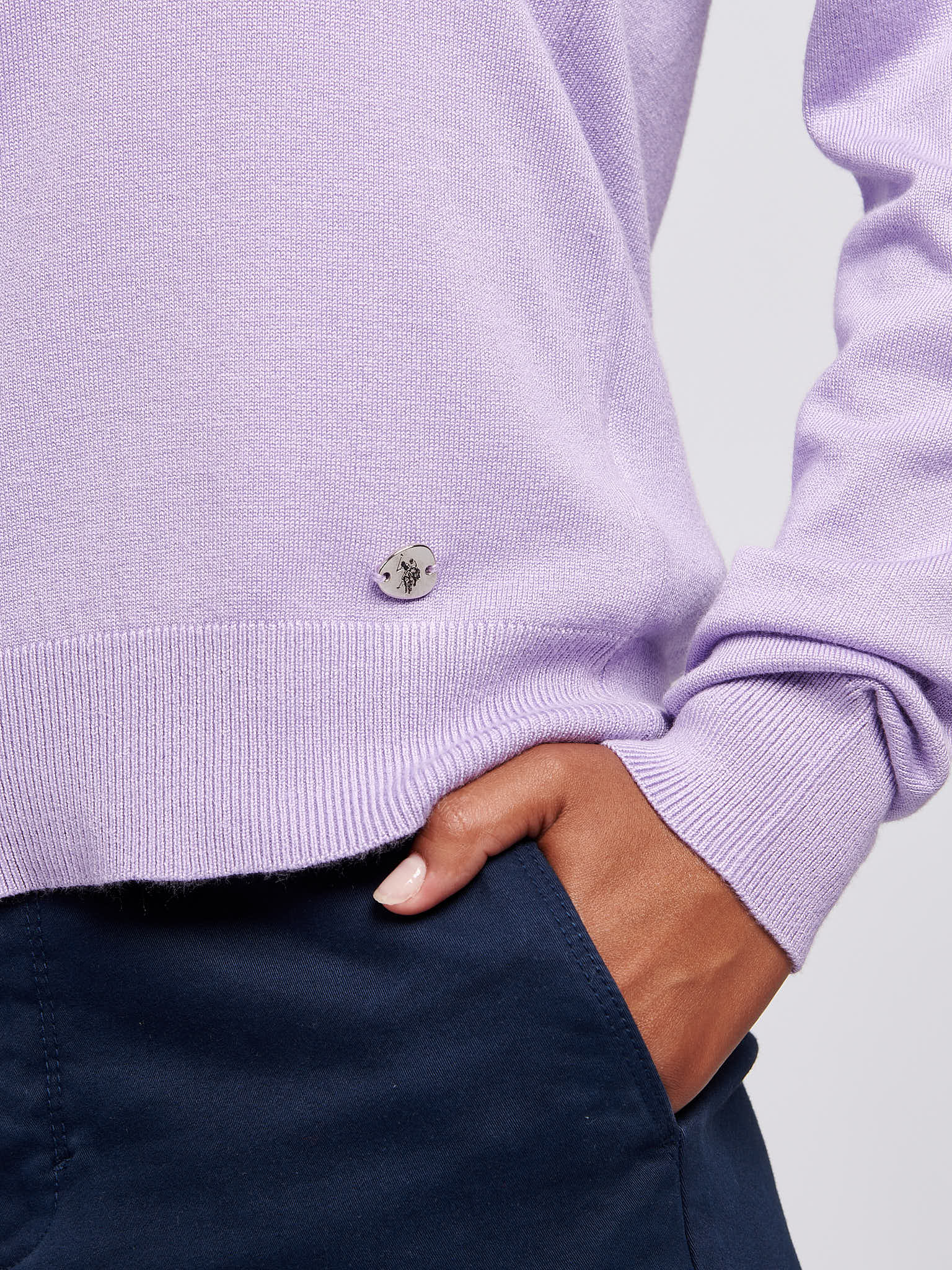 Cool and casual, the U.S. Polo Assn. Womens Crew Neck Sweatshirt is crafted from soft, light yarn for a comfortable layer during warmer months.