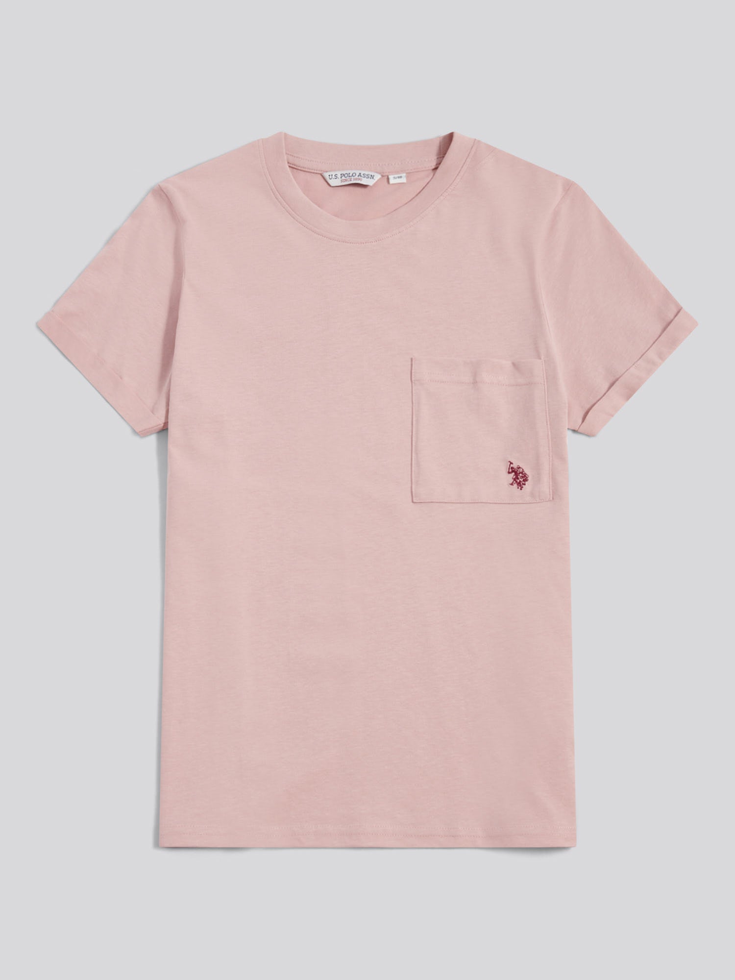 Womens Crew Neck Pocket T-Shirt in Pale Mauve