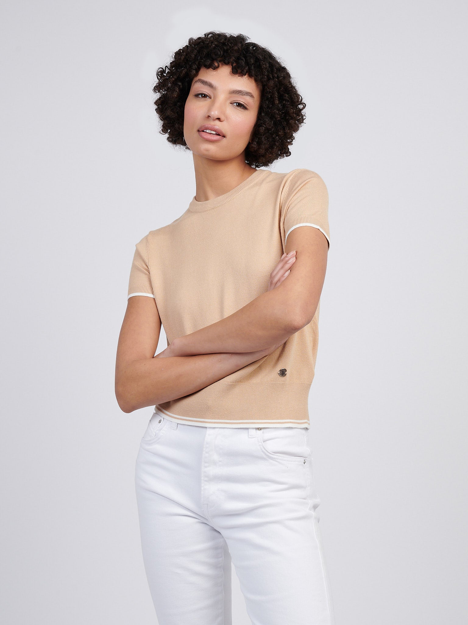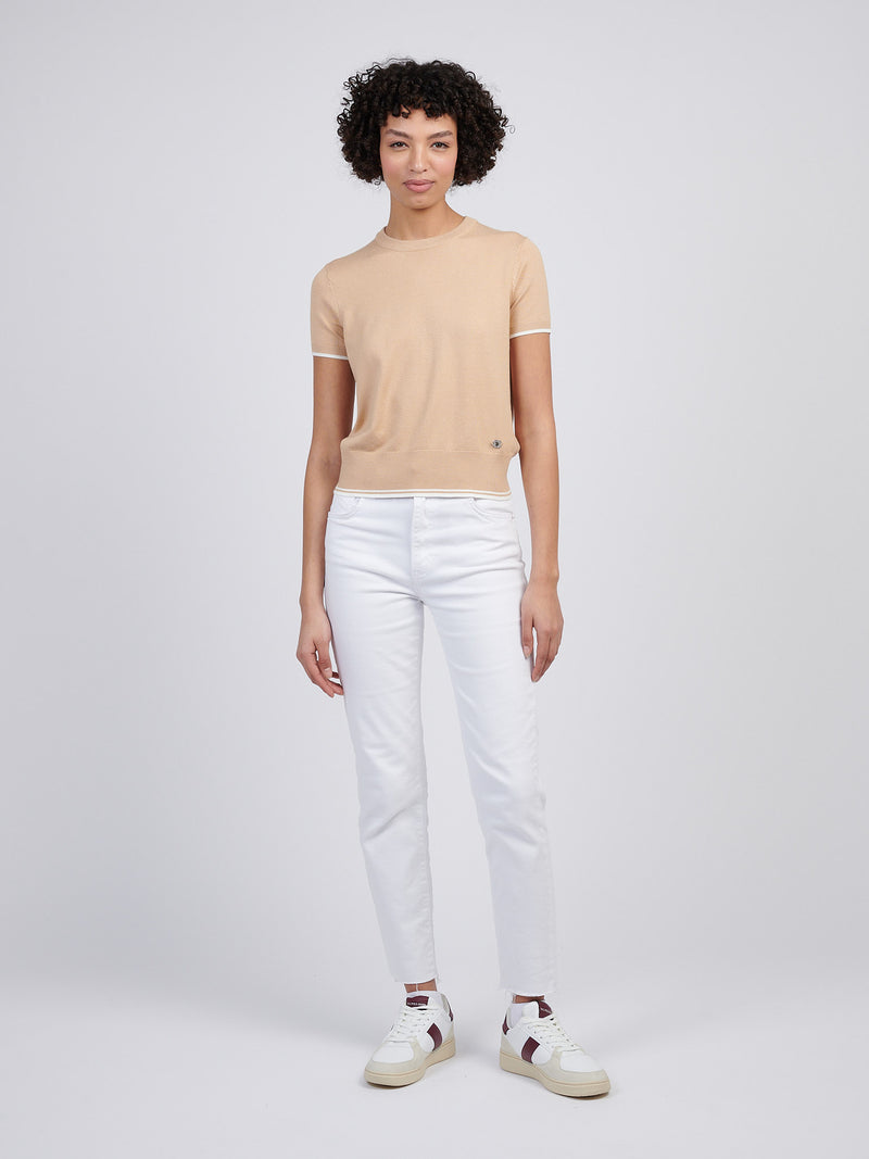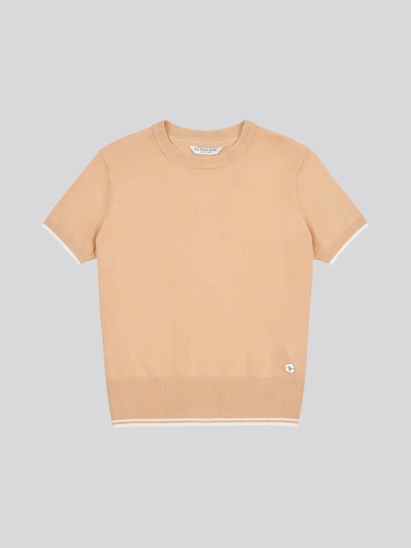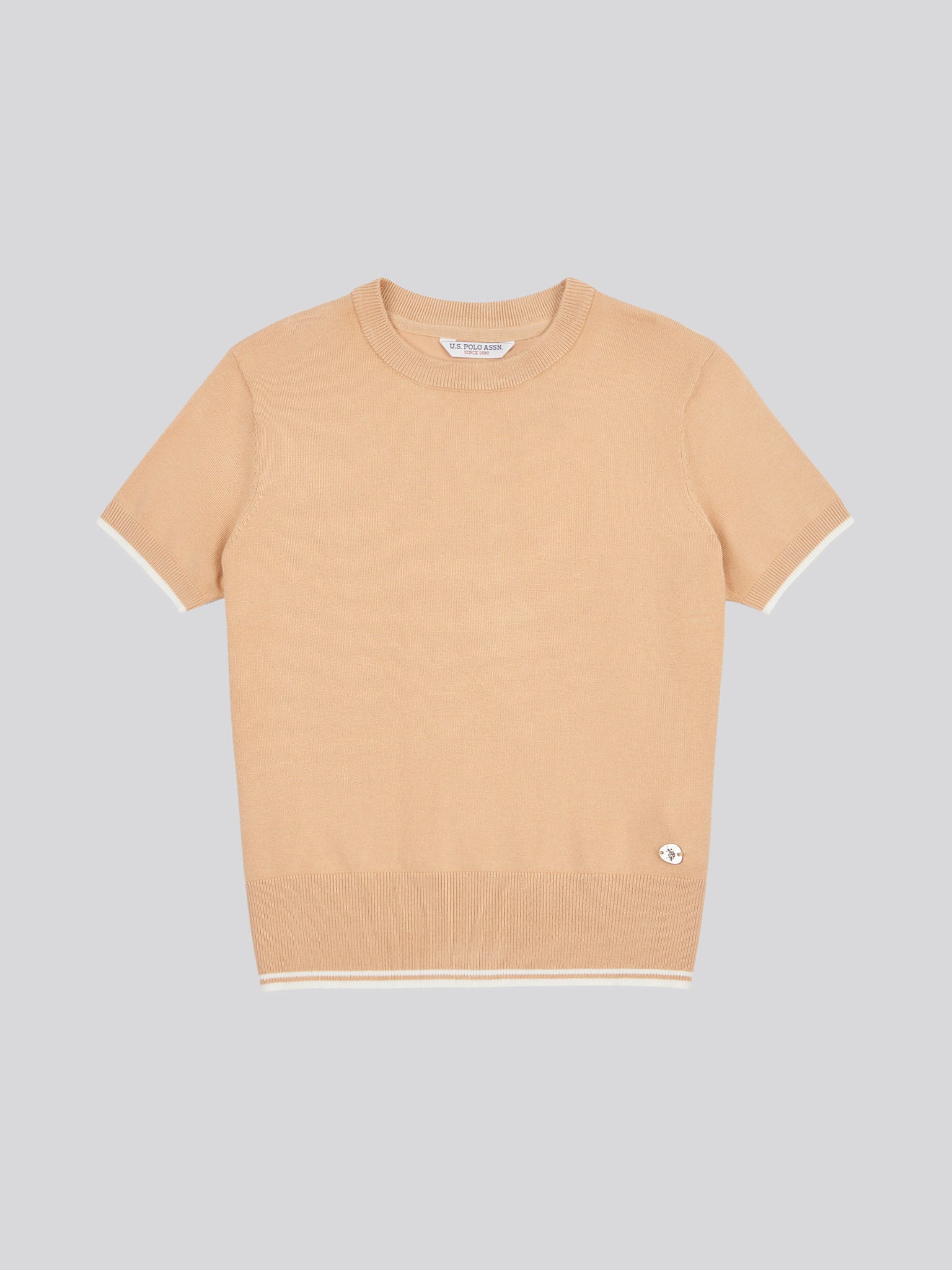 Womens Crew Neck Short Sleeve Jumper in Cuban Sand