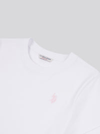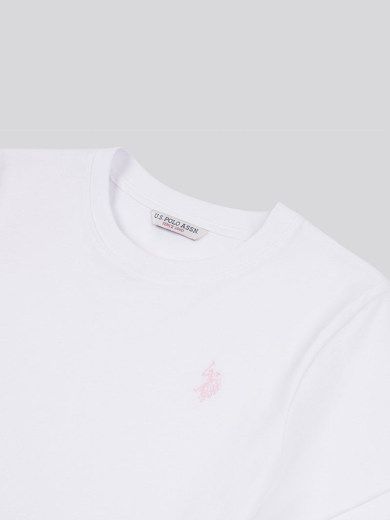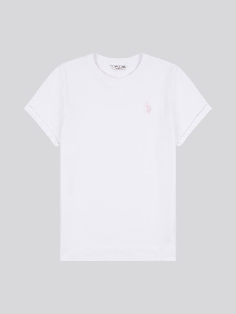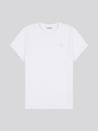Embrace effortless style with this U.S. Polo Assn. Womens Crew Neck Tee, a versatile essential crafted for comfort and everyday elegance. Made from 100% soft cotton, this tee features the iconic Double Horsemen embroidery on the chest, adding a refined touch to a casual staple. Pair with your favourite jeans or shorts for a relaxed, timeless look.
