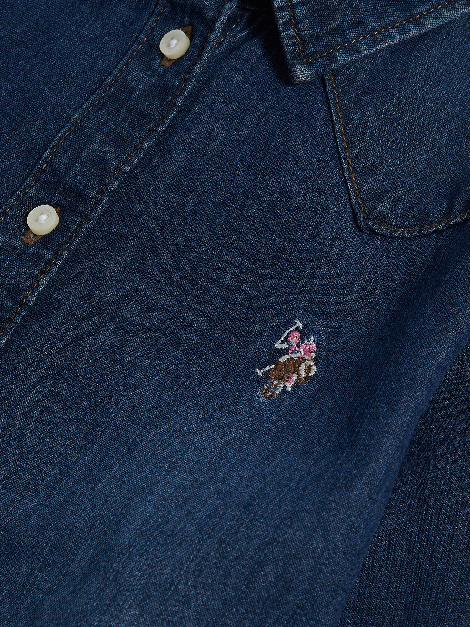 Combining classic denim character with refined detailing, the U.S. Polo Assn. Womens Denim Shirt is a modern wardrobe essential. Crafted from soft cotton denim and finished with subtle contrast stitching, it’s detailed with shaping darts and a signature embroidered logo. Wear it fully buttoned with trousers or open over a tee for a relaxed yet elevated look.