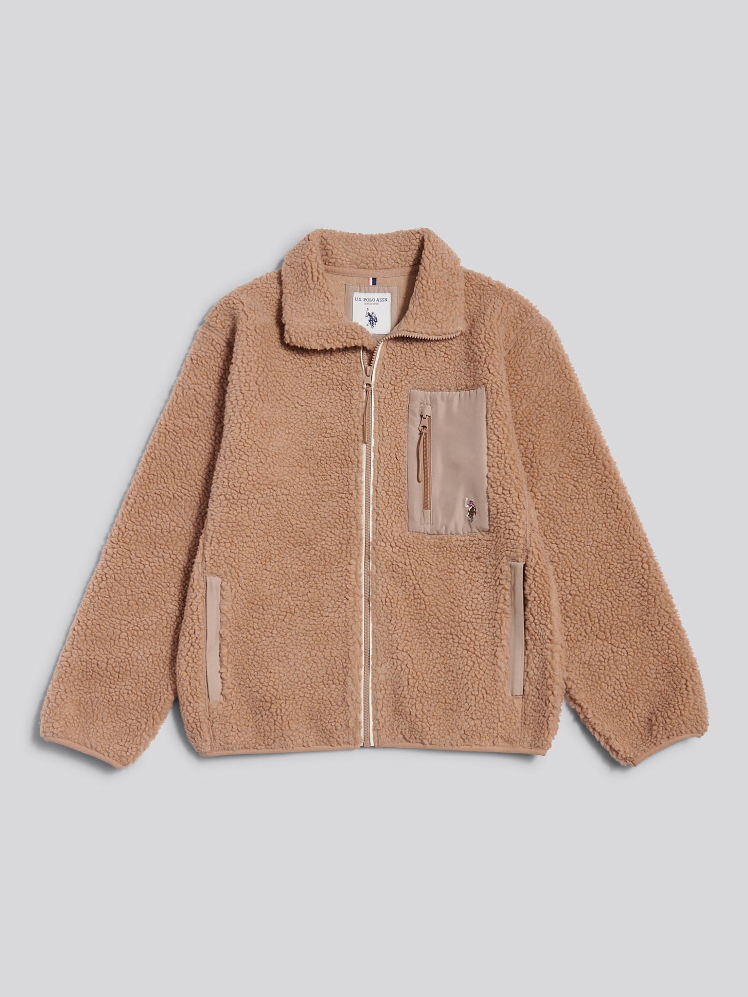 Wrap yourself in warmth with the U.S. Polo Assn. Womens Double Horsemen Borg Zip Funnel. This heritage-inspired piece is elevated by its textured fleece finish and contrasting nylon pocket detailing, offering a refined take on practical outerwear. Wear it zipped high with leggings and boots for countryside walks or throw over relaxed denim in the city.