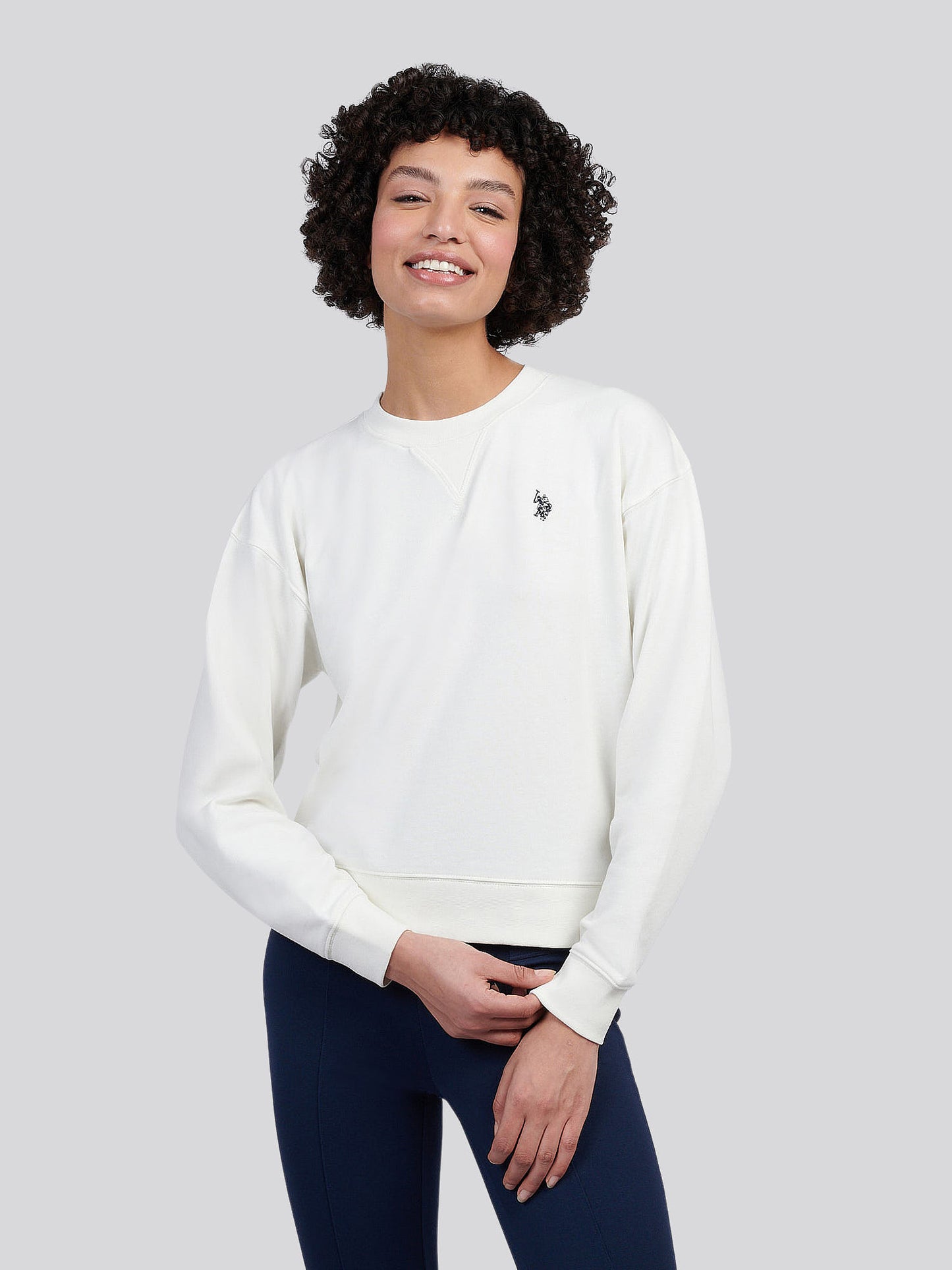 Embrace effortless style with the U.S. Polo Assn. Womens Double Horsemen Crew Sweatshirt. Designed with a relaxed fit and crafted for supreme comfort, this sweatshirt brings a touch of heritage with its classic crew neckline and signature Double Horsemen embroidery. Pair it with jeans for a timeless, casual look.
