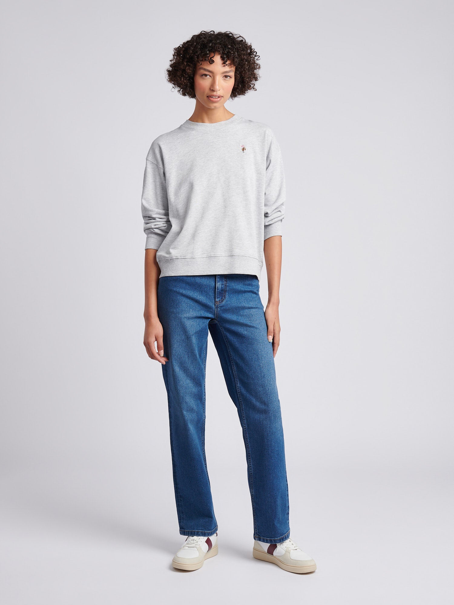 Womens Double Horsemen Crew Sweatshirt in Pearl Grey Marl