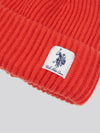 Womens Double Horsemen Woven Patch Beanie in Aura Orange