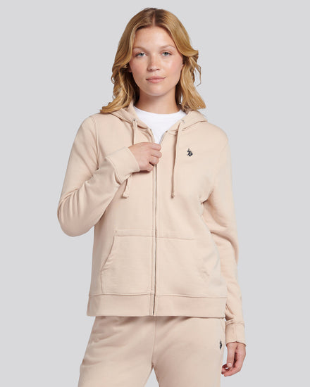 Embrace a blend of heritage and modern comfort with the U.S. Polo Assn. Womens Double Horsemen Zip Through Sweatshirt. This timeless zip-up combines casual elegance with practical warmth, perfect for layering on cooler days.