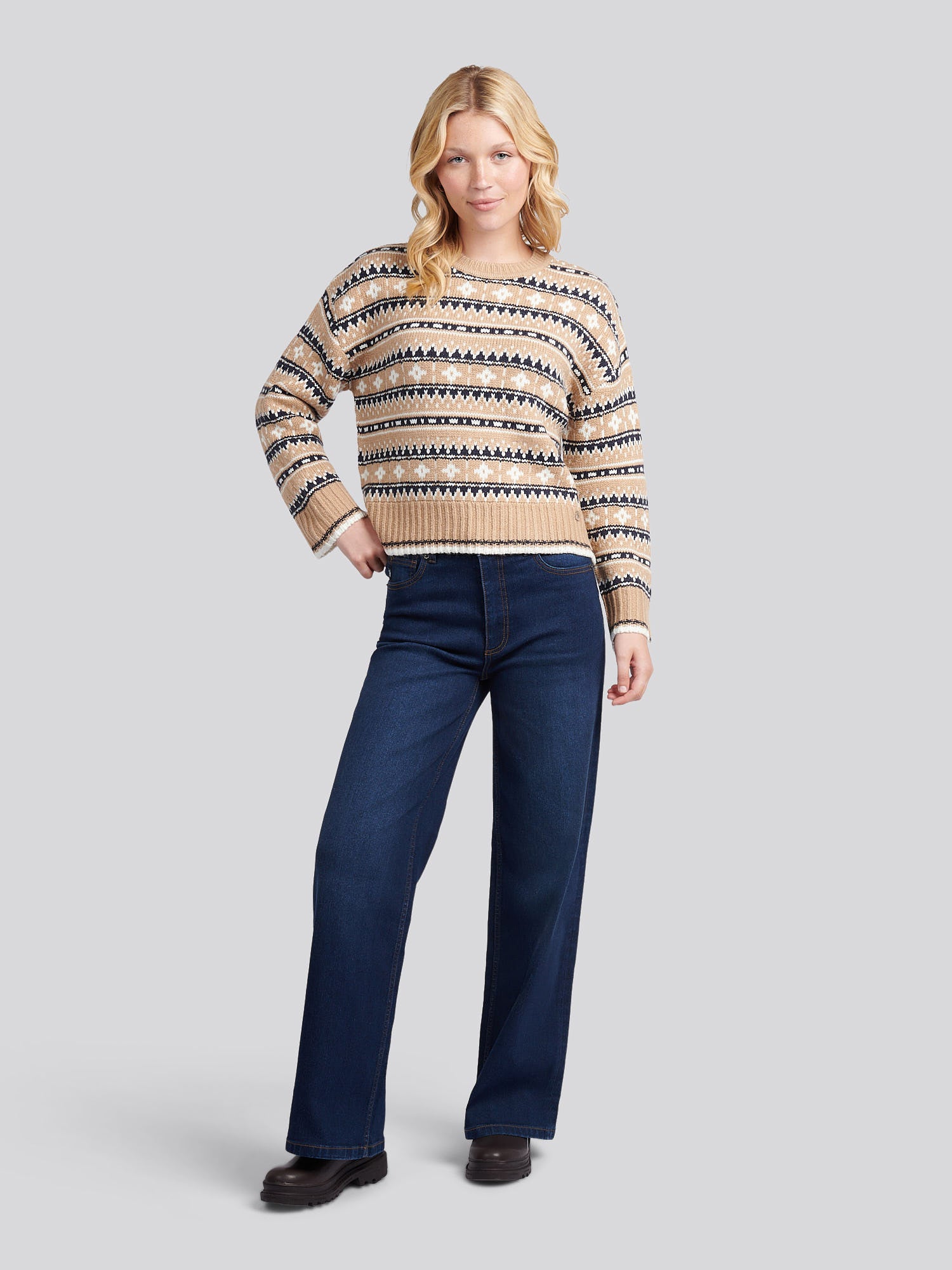 Womens Fair Isle Stripe Jumper in Natural