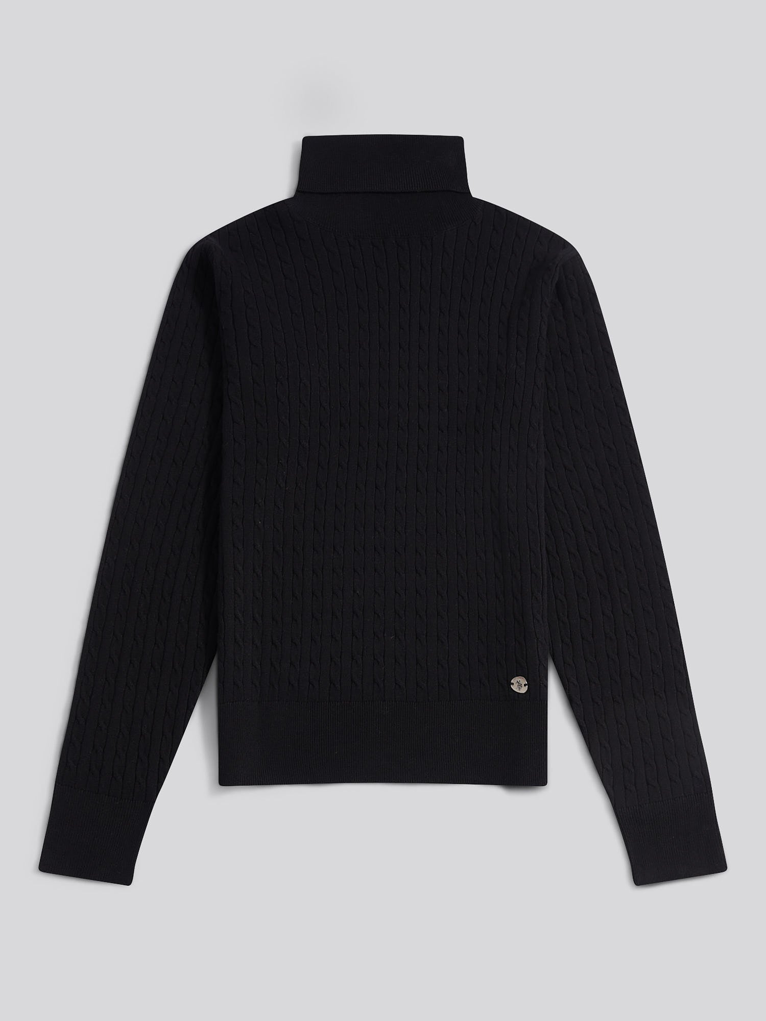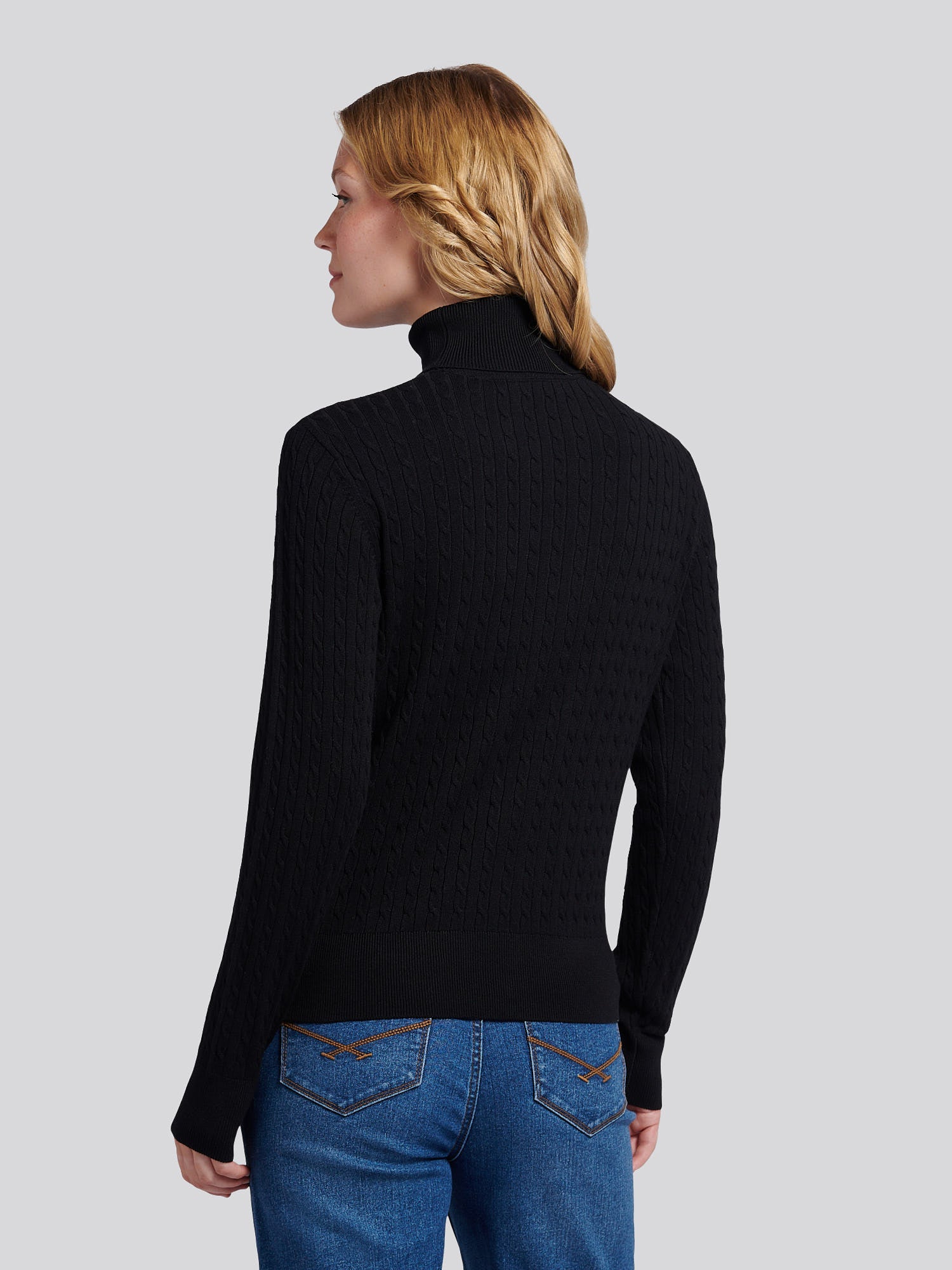 Womens Fine Cable Roll Neck Jumper in Black