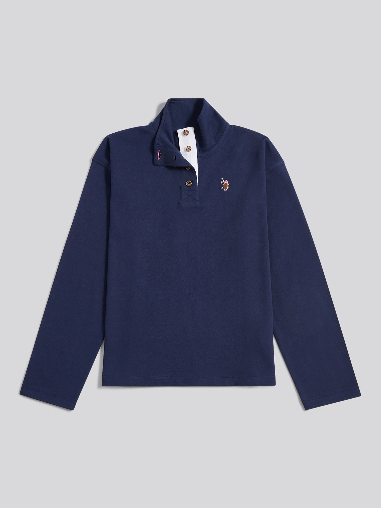 Womens Funnel Neck Rugby Shirt in Navy Iris