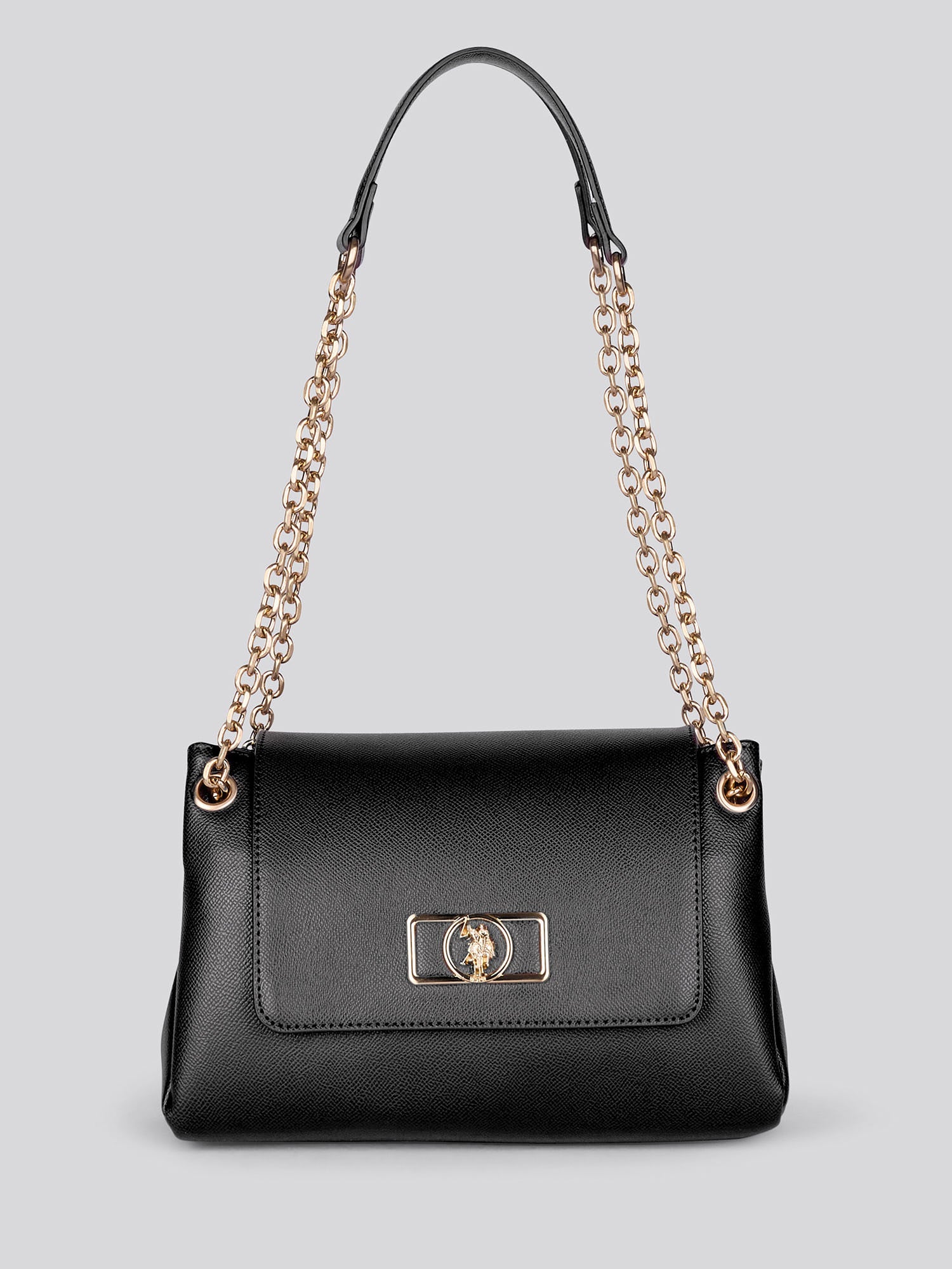 Elevate your day-to-night looks with the U.S. Polo Assn. Jones Chic Flap Chain Crossbody Bag. This bold yet compact essential features a structured silhouette and elegant gold-tone chain strap that brings polish to every step. Wear it over the shoulder with a tailored blazer or crossbody with a weekend dress for effortless sophistication.