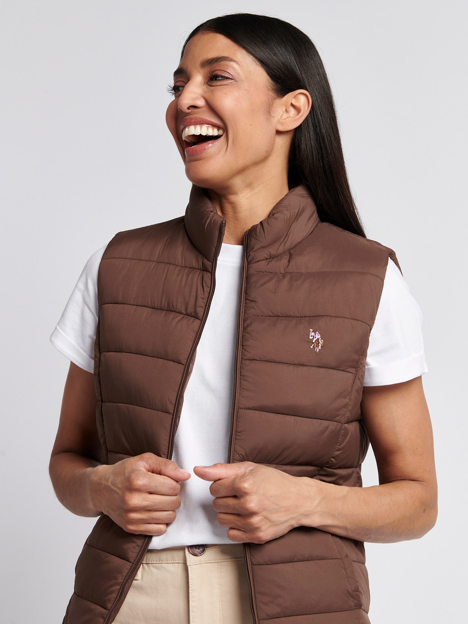 A style staple, this U.S. Polo Assn. Womens Lightweight Puffer Gilet is crafted in a water-resistant material and lightweight wadding.